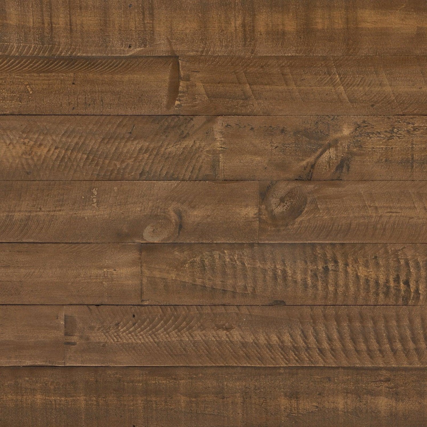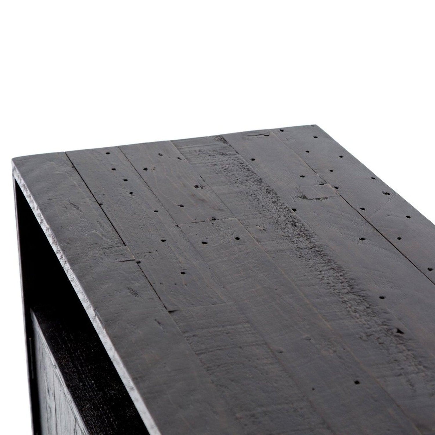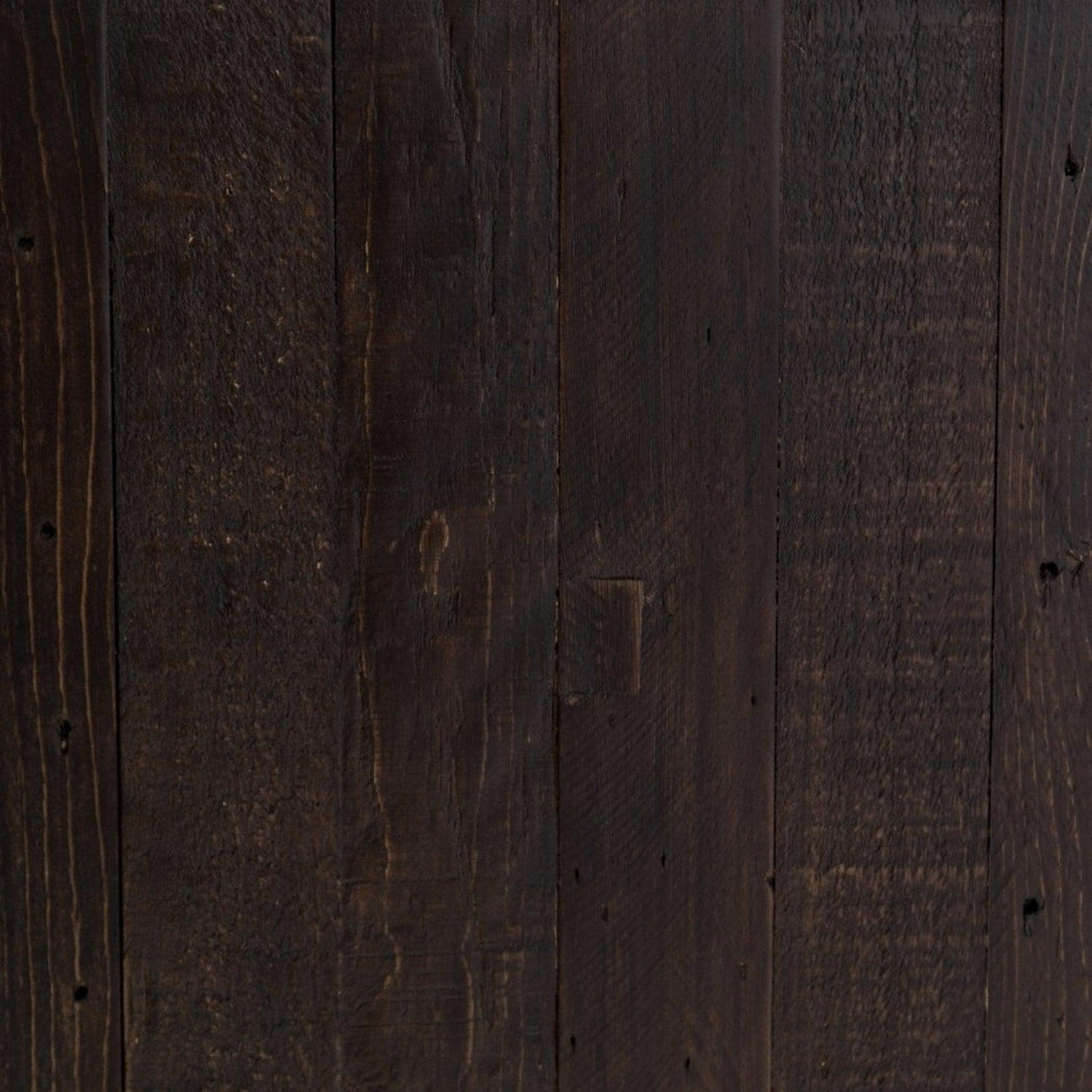 • El pino recuperado adquiere un color carbón profundo, con vetas naturales que reflejan un carácter rico.