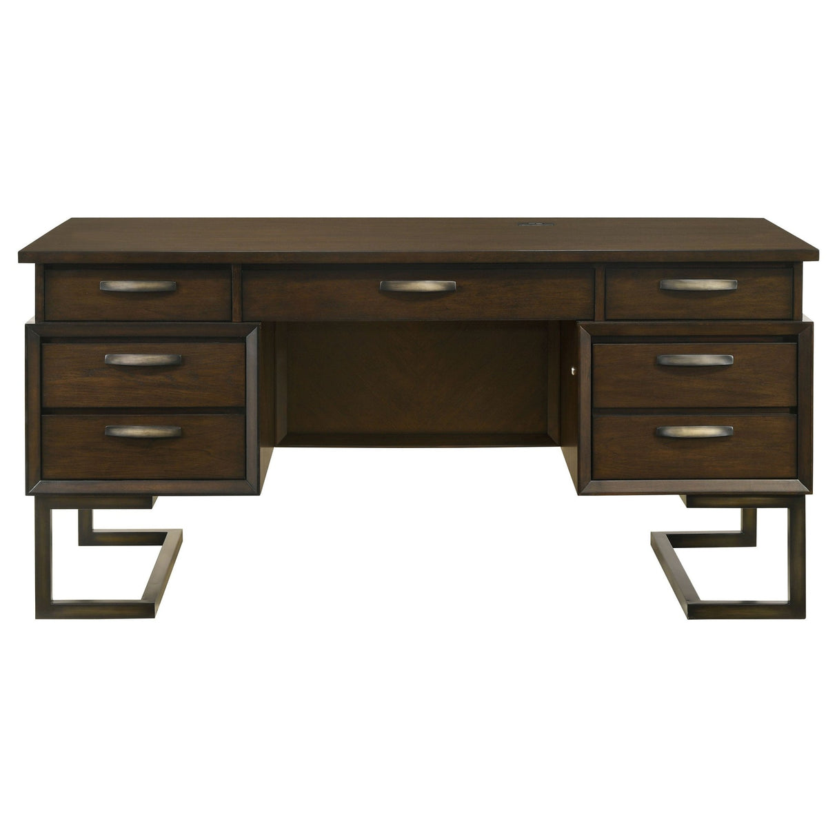 Escritorio ejecutivo - Escritorio ejecutivo Marshall de 6 cajones en nogal oscuro y bronce | Coaster