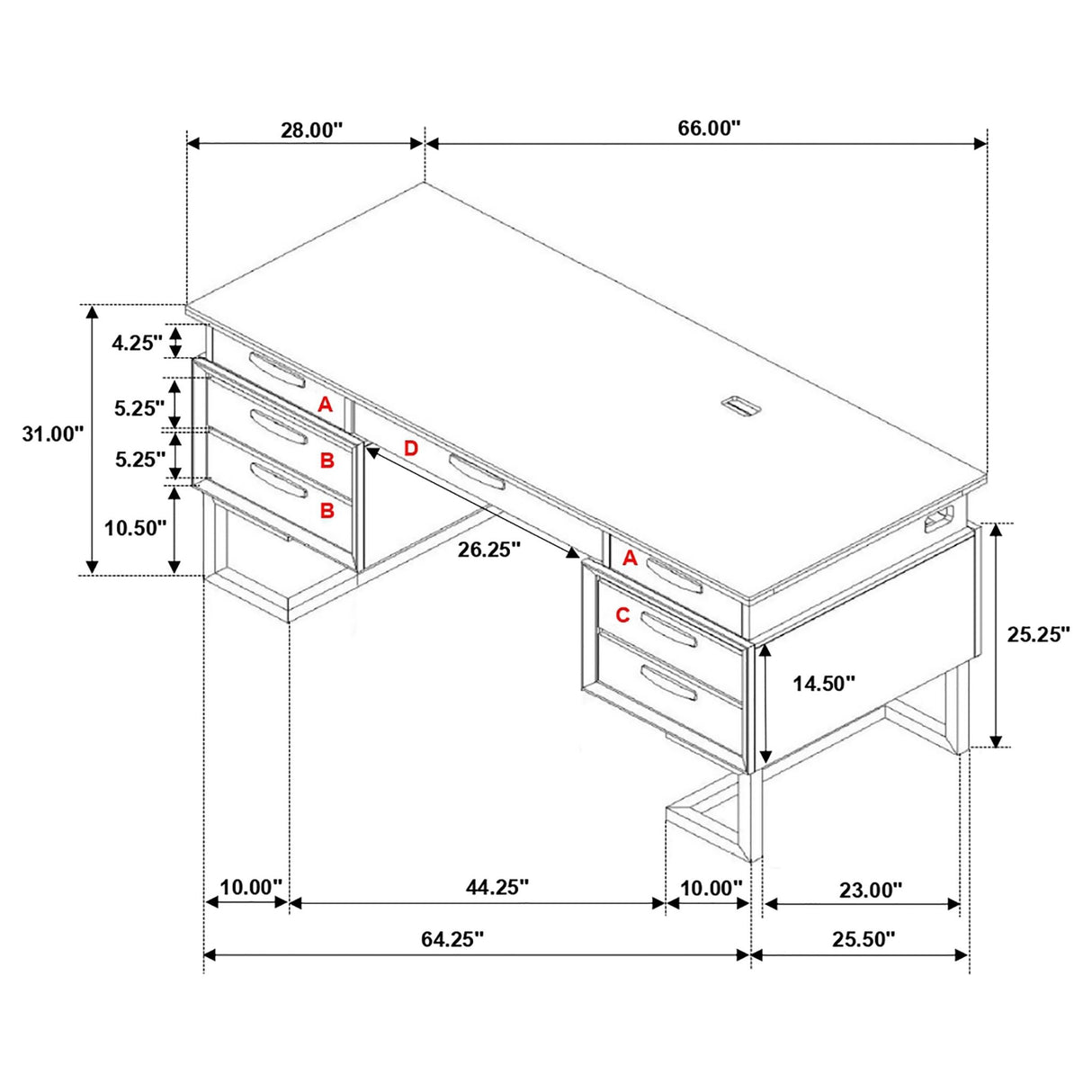 Escritorio ejecutivo: 66,00" de ancho x 28,00" de profundidad x 31,50" de alto