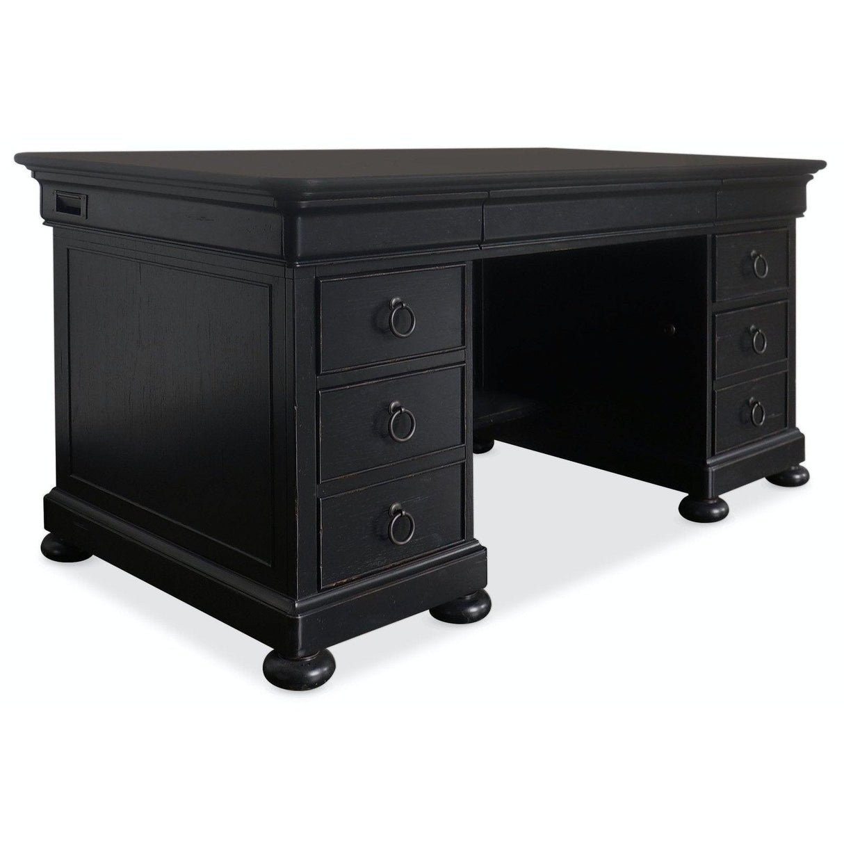 Escritorio ejecutivo junior Bristowe en chapa de nogal, color negro smoking - Muebles Hooker está agotado y se enviará tan pronto como vuelva a estar disponible.