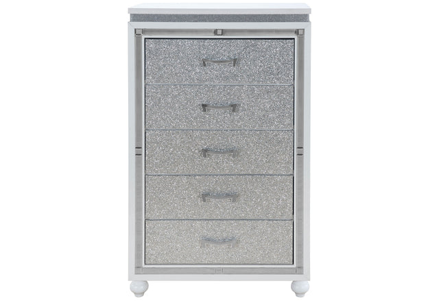 Presentamos la Colección Collete de Global Furniture USA, un lujoso juego de dormitorio que irradia glamour moderno. Con frentes de cajones de cristal triturado y detalles de espejo, esta colección crea una atmósfera deslumbrante. Los elegantes herrajes complementan el diseño, mientras que la cama con iluminación LED le da un toque contemporáneo. Realce su dormitorio con la Colección Collete, donde estilo y sofisticación se fusionan para crear un magnífico santuario de descanso y relajación.
