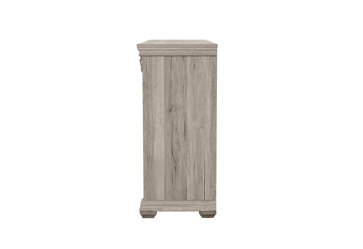 Organiza tu ropa y accesorios con estilo con la cómoda Rowan/Tatum. Su acabado rústico en madera, sus intrincados detalles y sus volutas se combinan para crear una pieza impactante que realza la belleza de tu dormitorio.