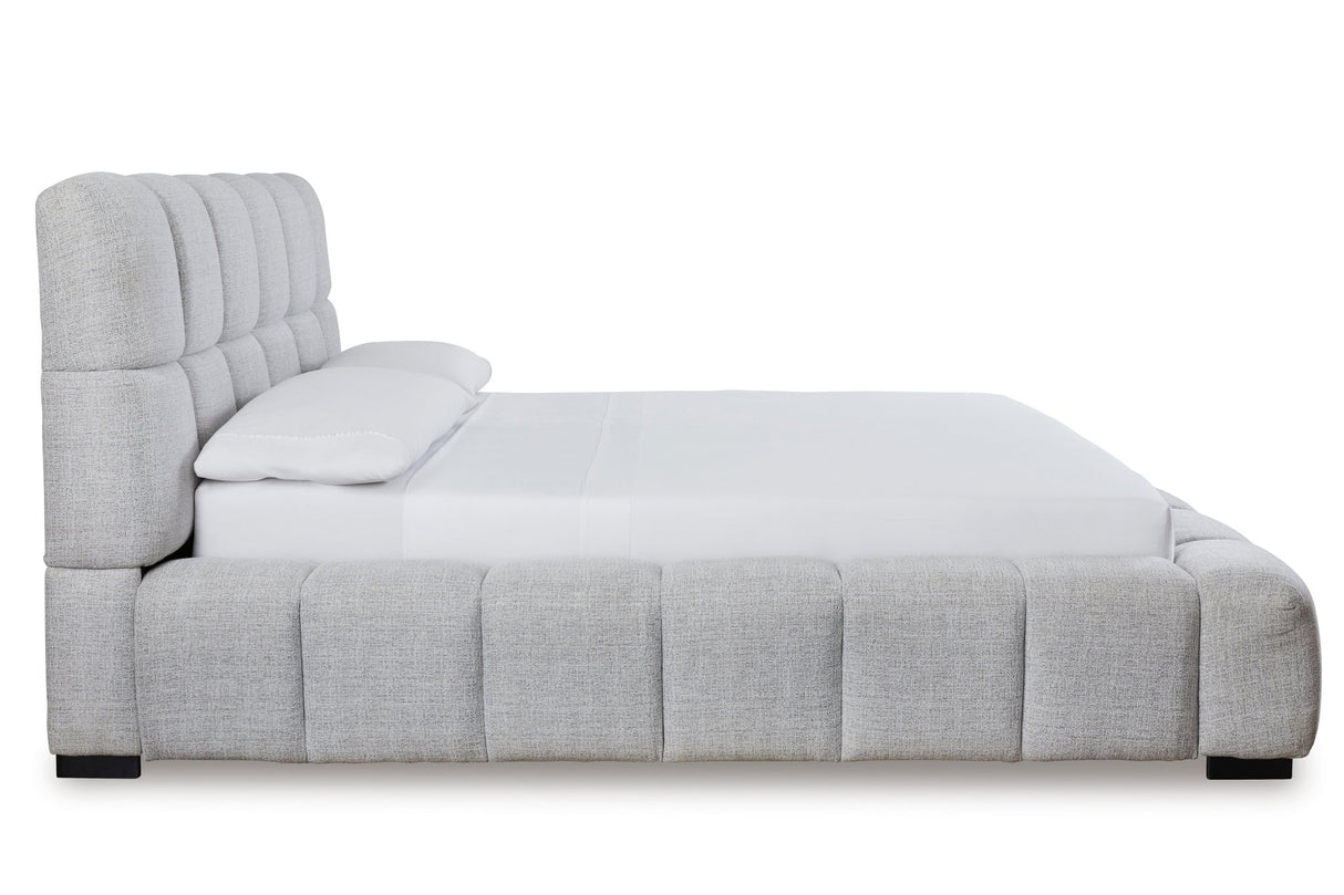 Cama tapizada Grendusk King gris claro | Ashley está agotado y se enviará tan pronto como vuelva a estar disponible.