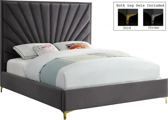 Meridian Furniture - Cama tamaño king Eclipse de terciopelo gris - EclipseGrey-K