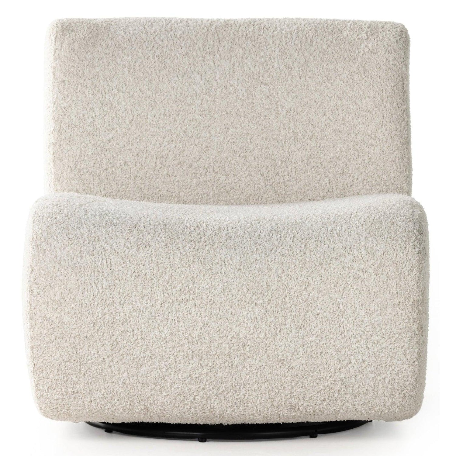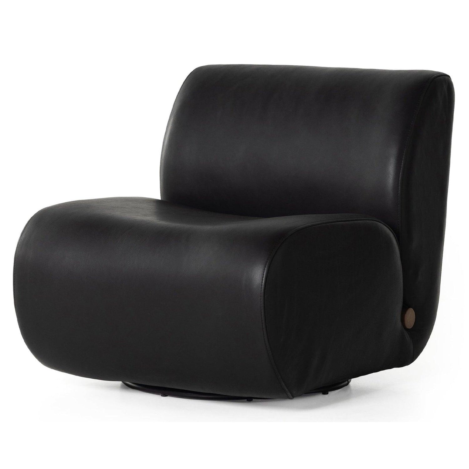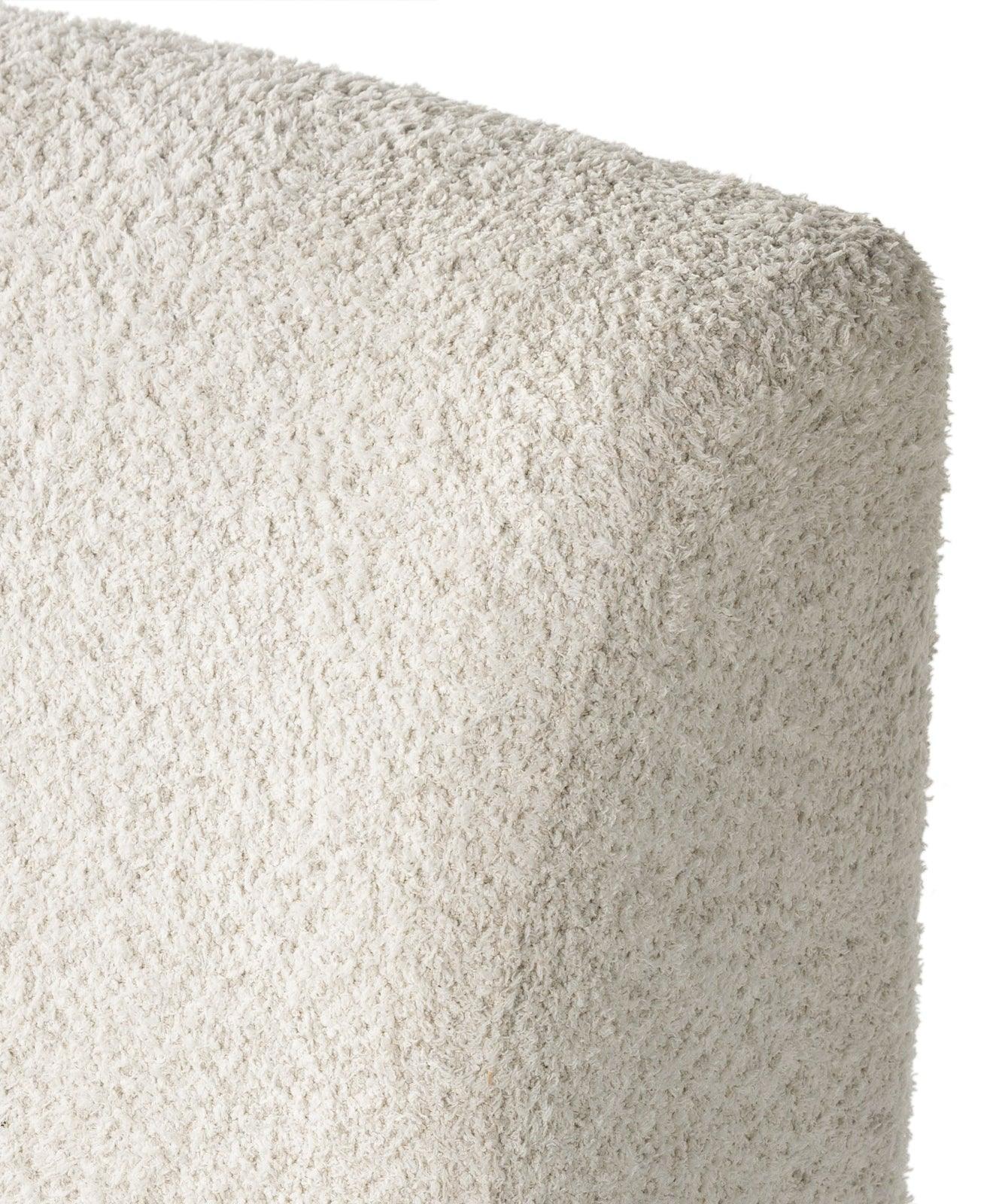 - Un elegante cuero italiano de grano superior y una tela texturizada de alto rendimiento cubren una silueta curvilínea y sin brazos, con una clavija de roble macizo que sobresale para lograr un efecto adicional.
