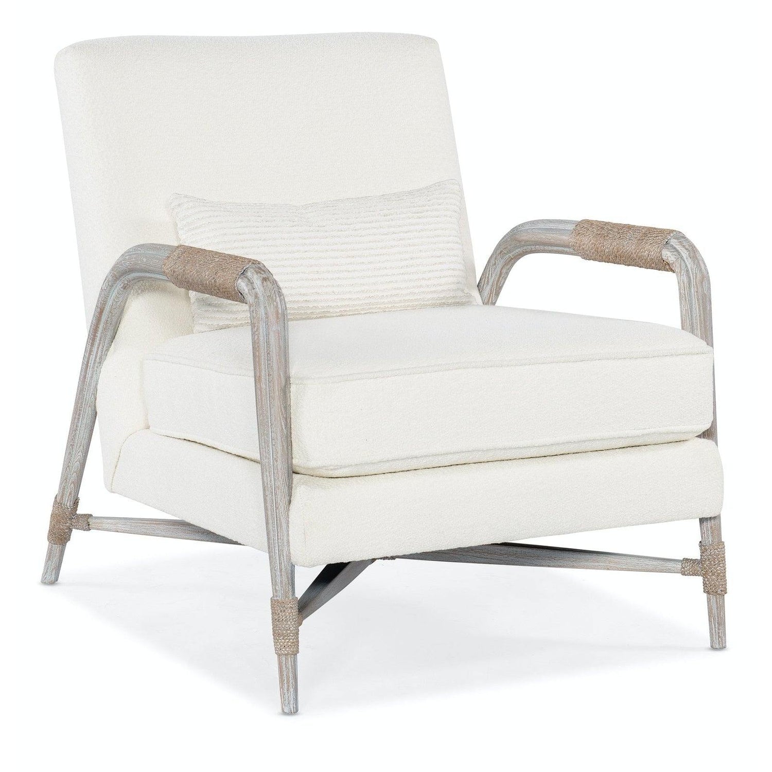 Sillón Isla en tejido ártico de macramé con brazos envueltos en cuerda, de Hooker Furniture