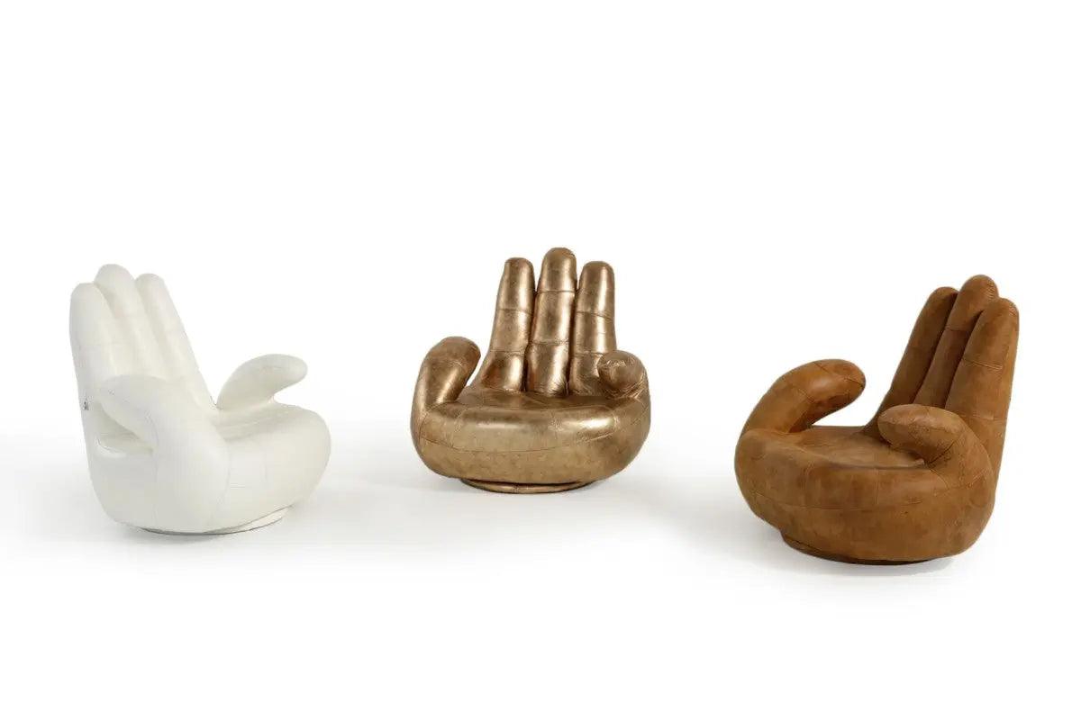 La silla decorativa Sosia es la pieza moderna perfecta para un hogar audaz. Su tapizado dorado de cuero italiano cubre la silueta exagerada de esta silla hecha a mano. Su base giratoria le da un toque de distinción. Perfecta para una sala de estar impactante, combínala con una alfombra de piel y un sofá de cuero blanco para completar un espacio excepcional.