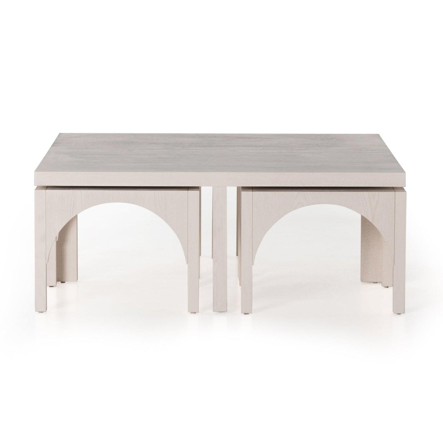 Mesa de centro Amara con asientos arqueados anidados | Four Hands - Blanco está agotado y se enviará tan pronto como vuelva a estar disponible.