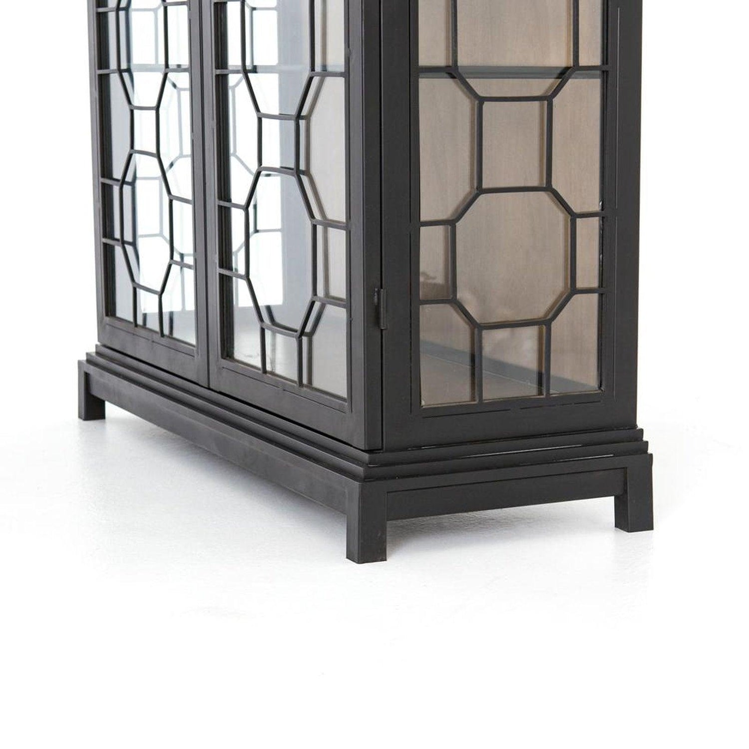 - De gran tamaño y estilo, el metal con acabado en negro da la bienvenida a los lados y estantes de vidrio templado, con un patrón de panal para un atractivo llamativo.