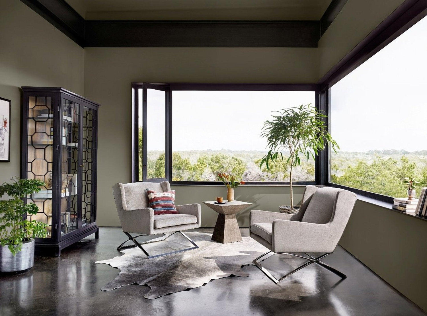 - Un interior de madera con acabado gris crea una mezcla de materiales intrigante.