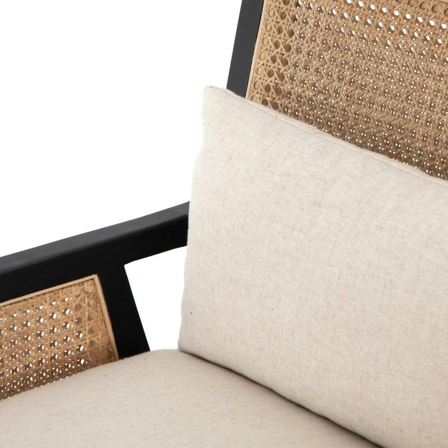 - Los marcos de madera de ortiga de ébano cepillados enmarcan una incrustación textural de caña natural para lograr un contraste perfecto, mientras que los asientos de mezcla de lino ligero de tela de alto rendimiento brindan una sensación de sensibilidad moderna.