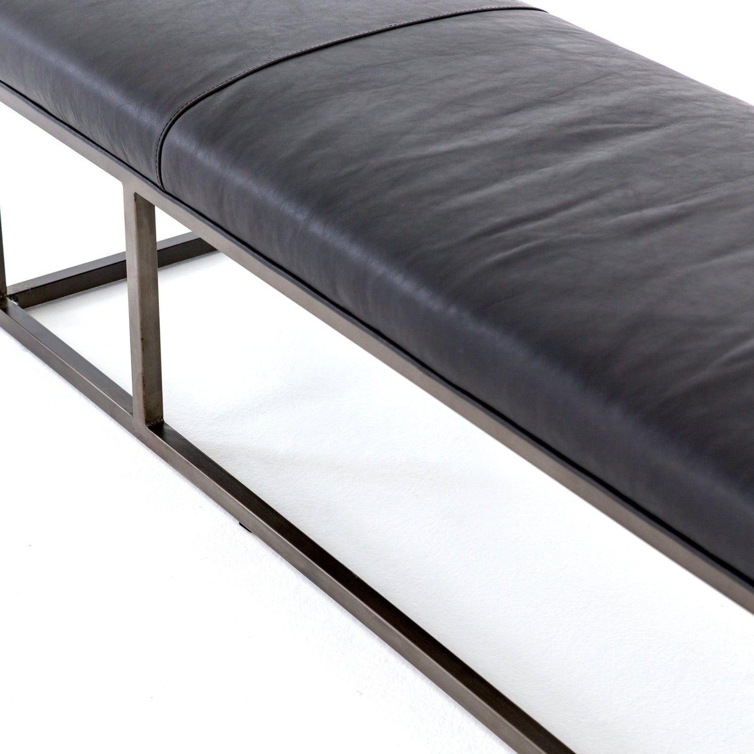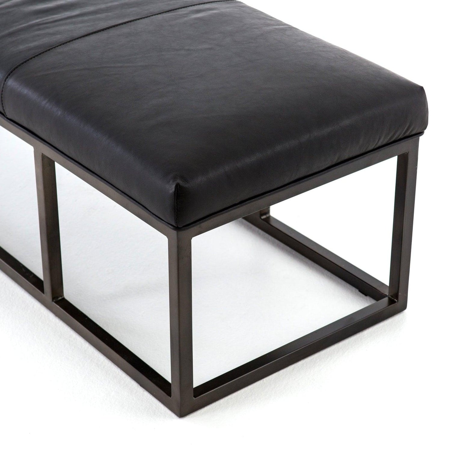 - La estructura de hierro con acabado en bronce se mantiene delgada y estructurada para sostener una parte superior a medida de cuero color topo y negro azabache.