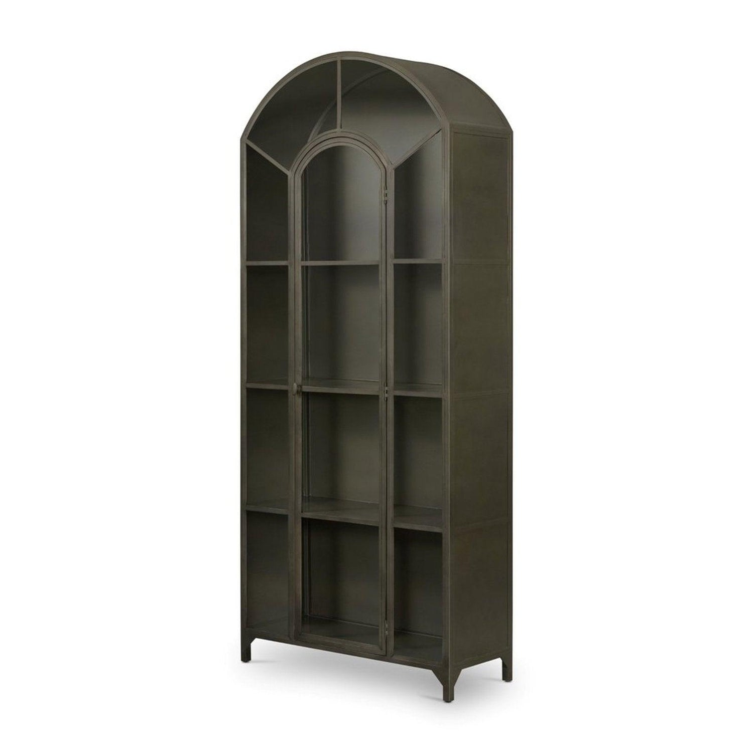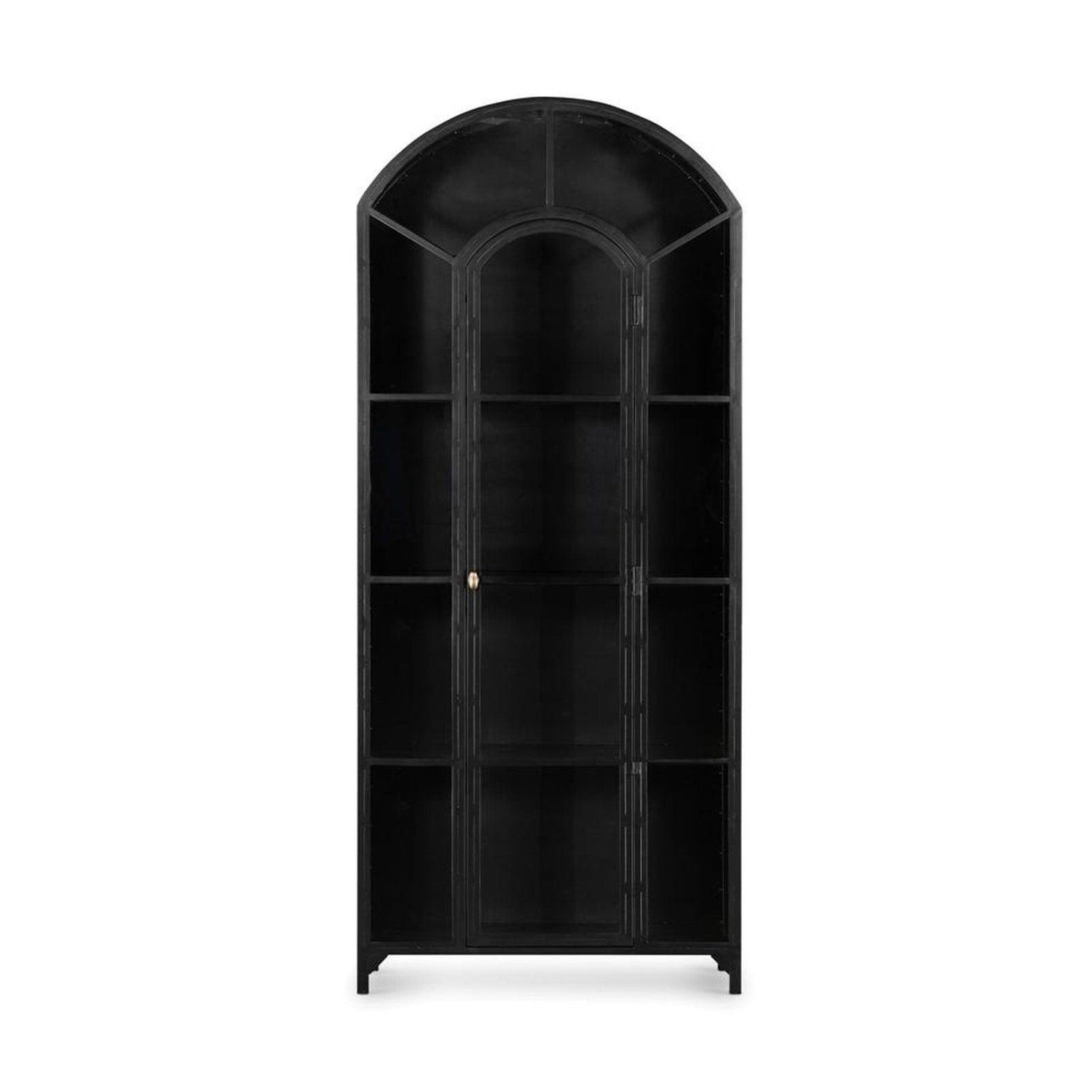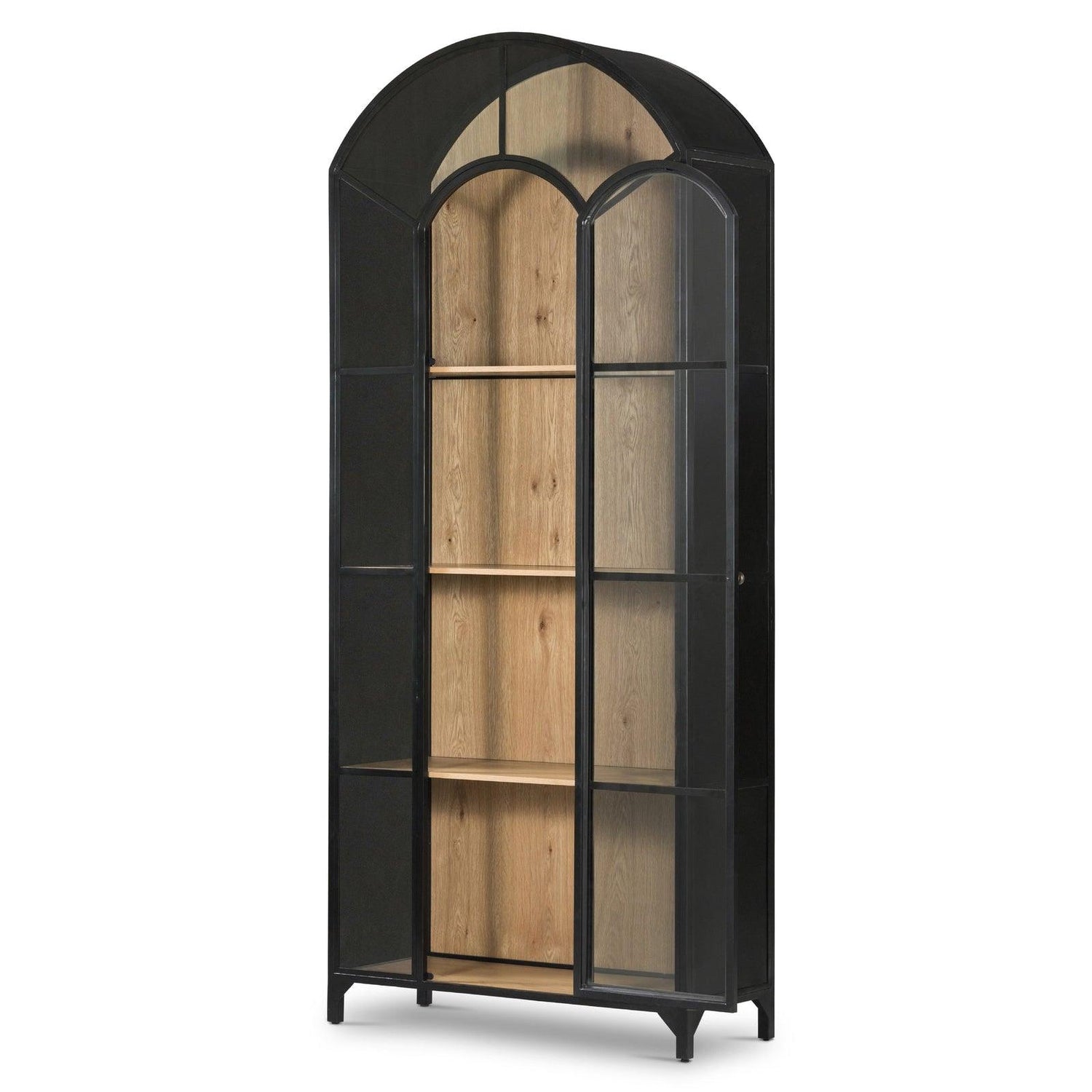 • Exhiba artículos de bar, libros y otros tesoros en un gabinete con tapa arqueada.