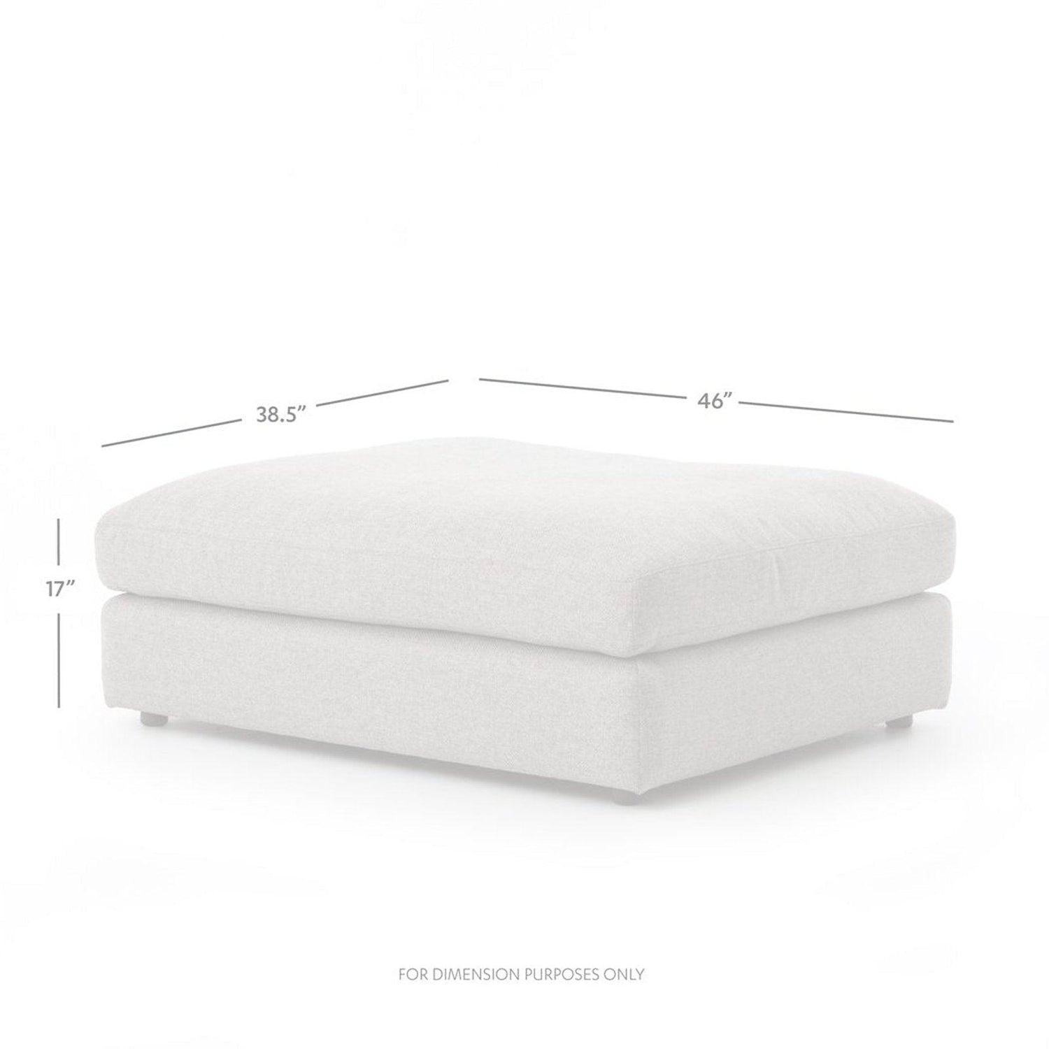 - Una otomana de gran tamaño revestida con un tejido gris claro atractivo y duradero.