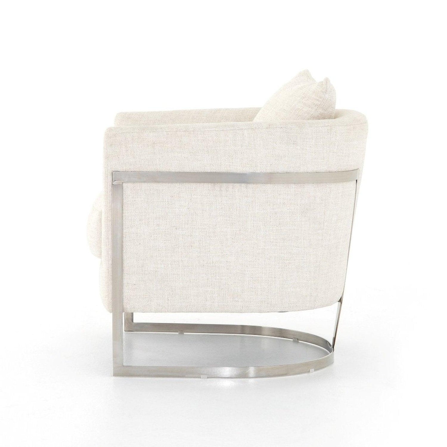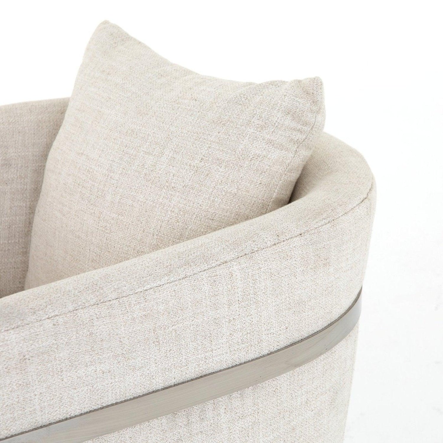 • El Art Decó adopta un elegante toque italiano, ya que los asientos de mezcla de lino color crema parecen flotar dentro de una base curva de acero con acabado plateado, formando una V aguda para una vista posterior espectacular.