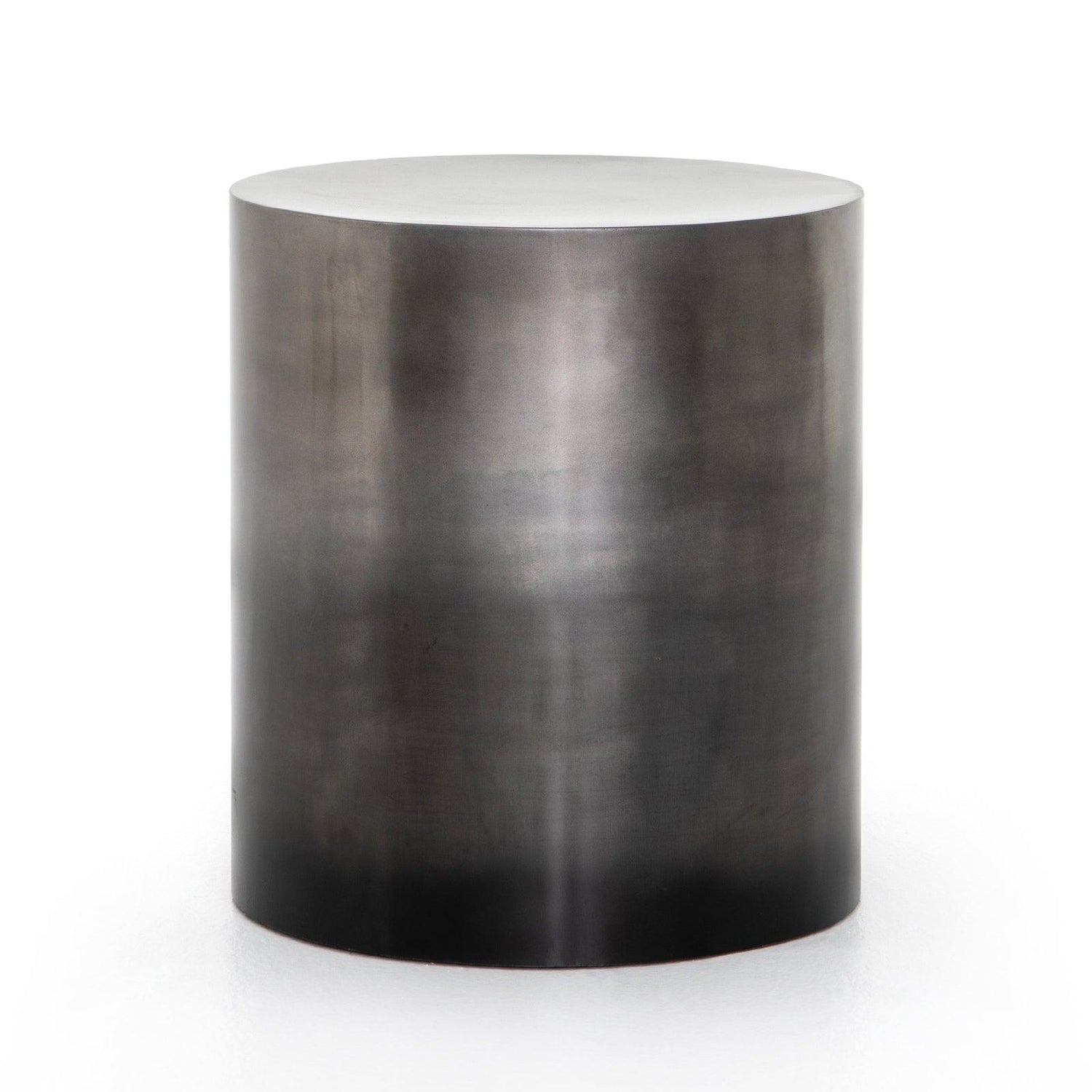 - Un acabado de latón antiguo resalta la mezcla gradual de tonos del hierro, brindando un efecto ombré distintivo a la mesa auxiliar redondeada.