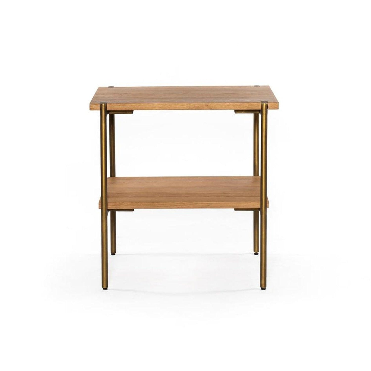- Cree una apariencia abierta y aireada con roble natural y un marco de hierro delgado con acabado de latón satinado.