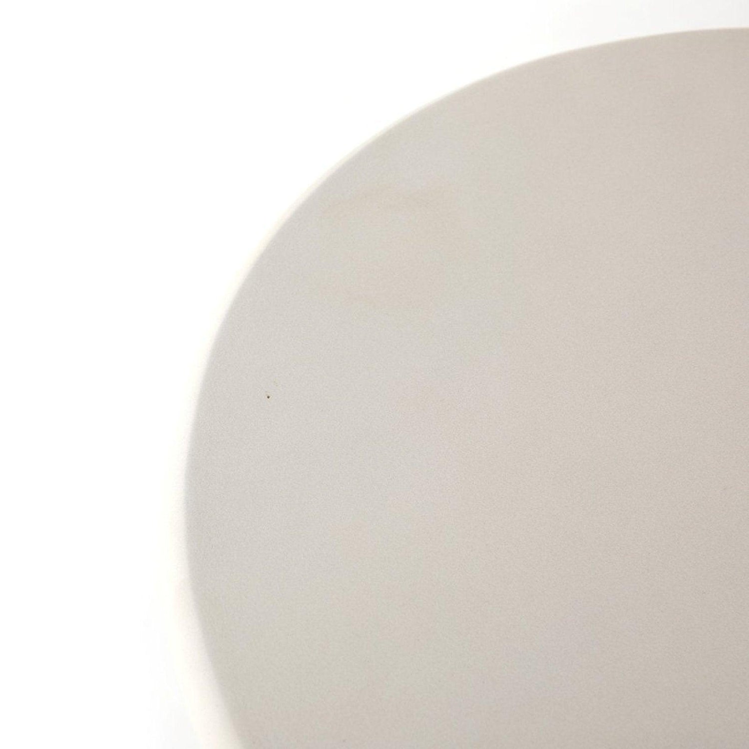 - Para un juego fresco de estilo monocromático, una base de hierro aireada con forma de jaula sostiene una mesa en forma de cuenco de hormigón con acabado blanco.