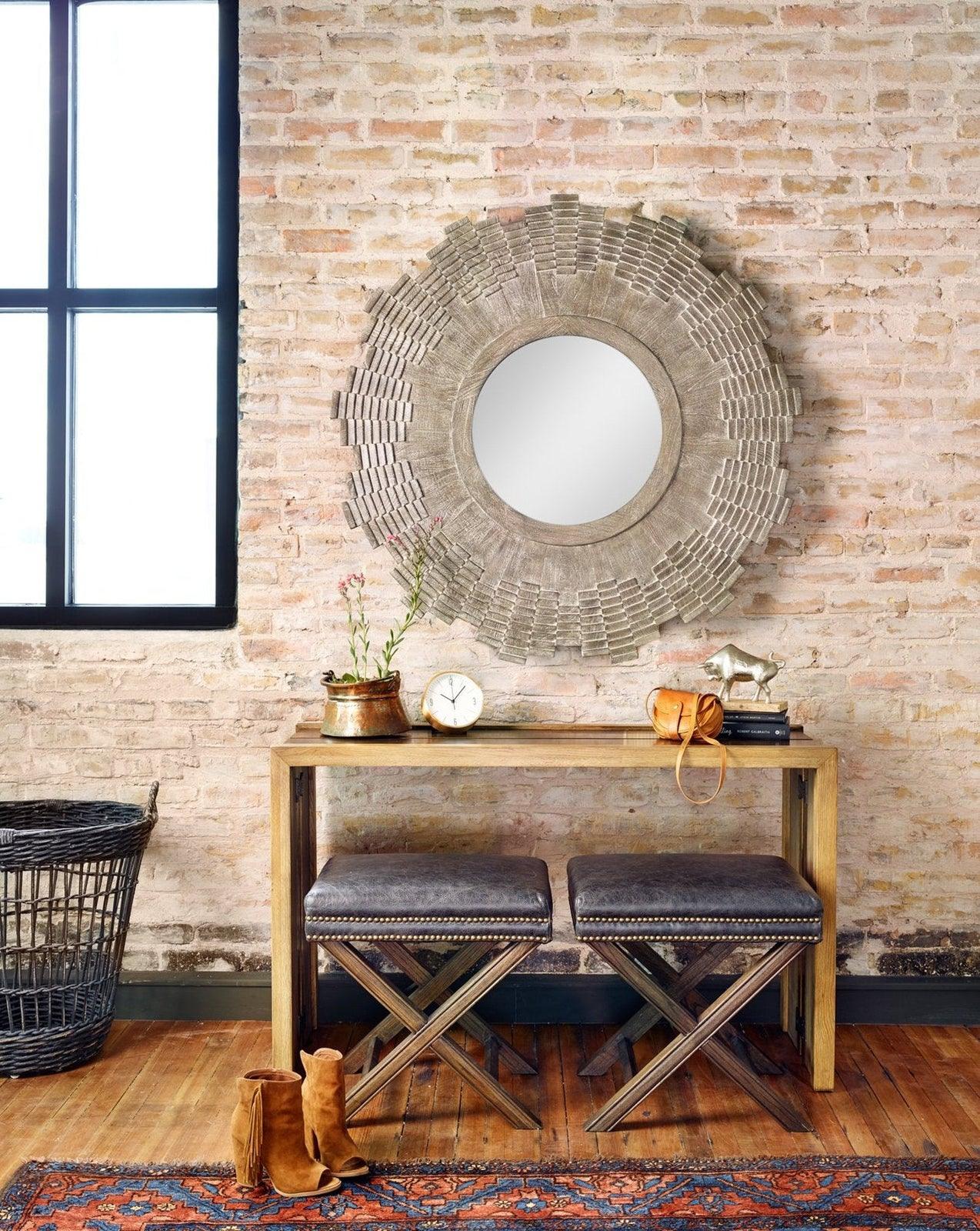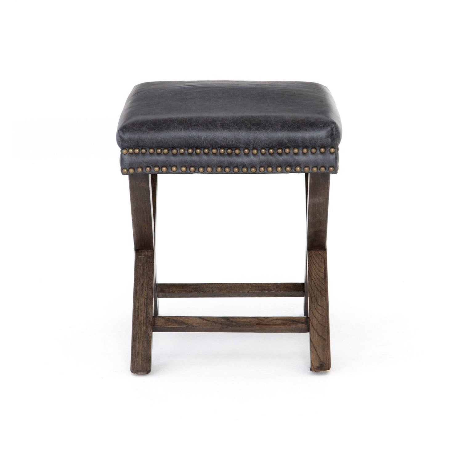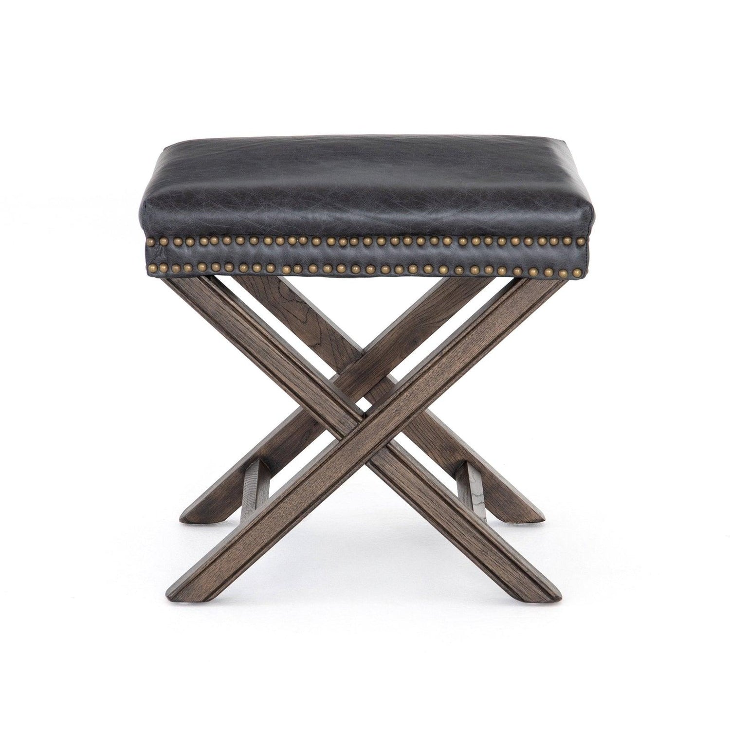 - La base con estructura en forma de X está rematada con un cuero suave de primera calidad, acentuado por una doble fila de cabezas de clavos con acabado de latón.