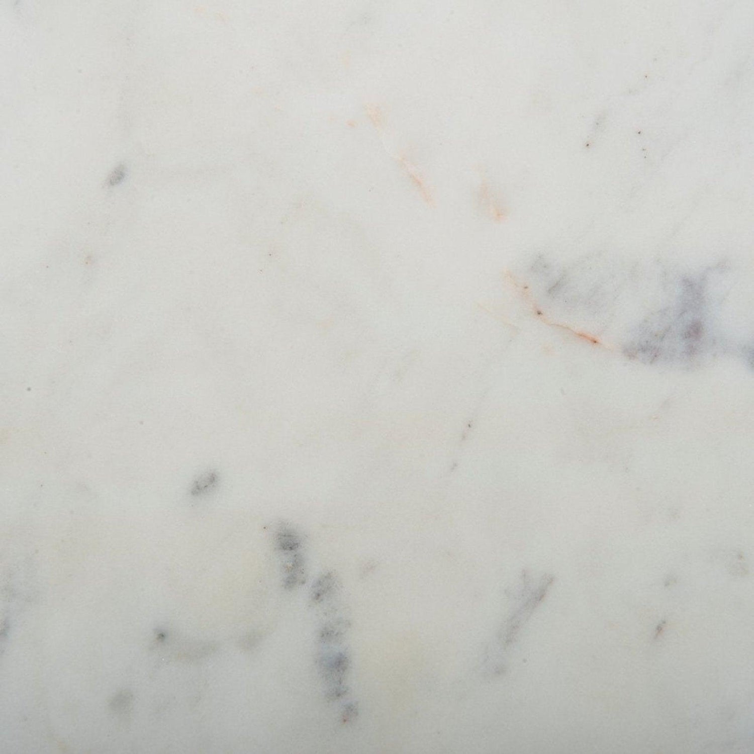 • Apilado y estructurado, el hierro delgado le da un toque sofisticado al mármol blanco pulido.