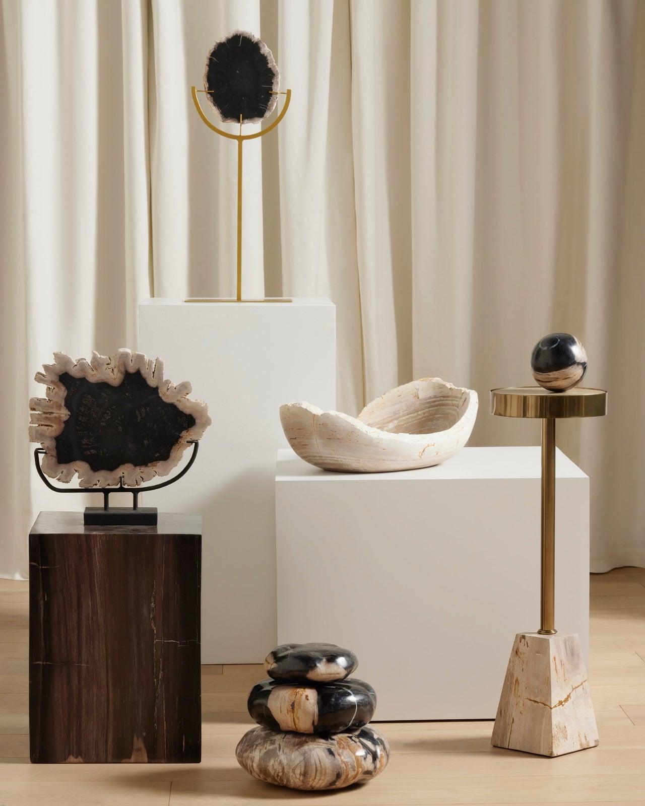 • Materiales: Madera petrificada, acero inoxidable