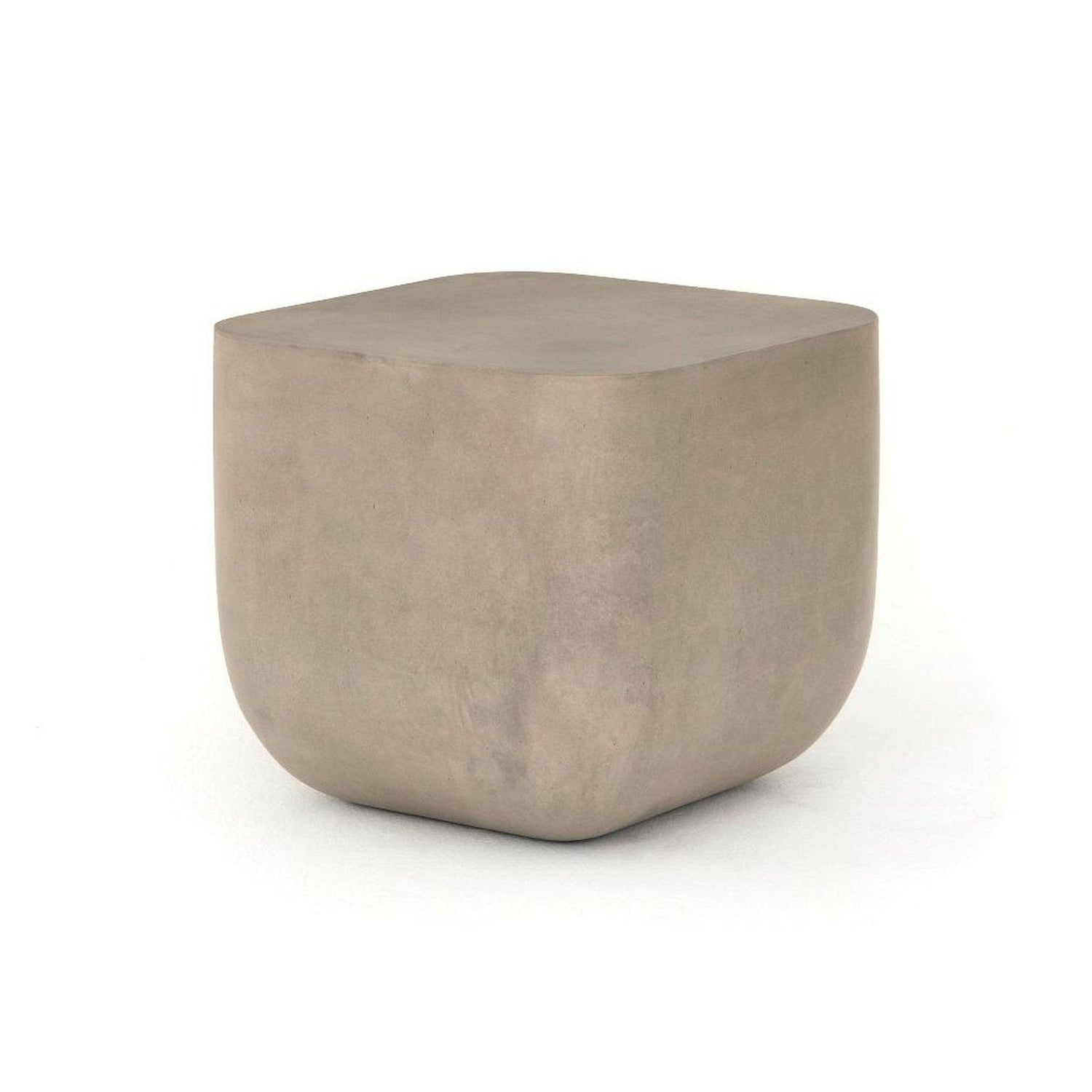 - El hormigón con acabado gris y su forma cuadrada suave crean una mesa auxiliar moderna y sin esfuerzo, tanto para interiores como para exteriores.
