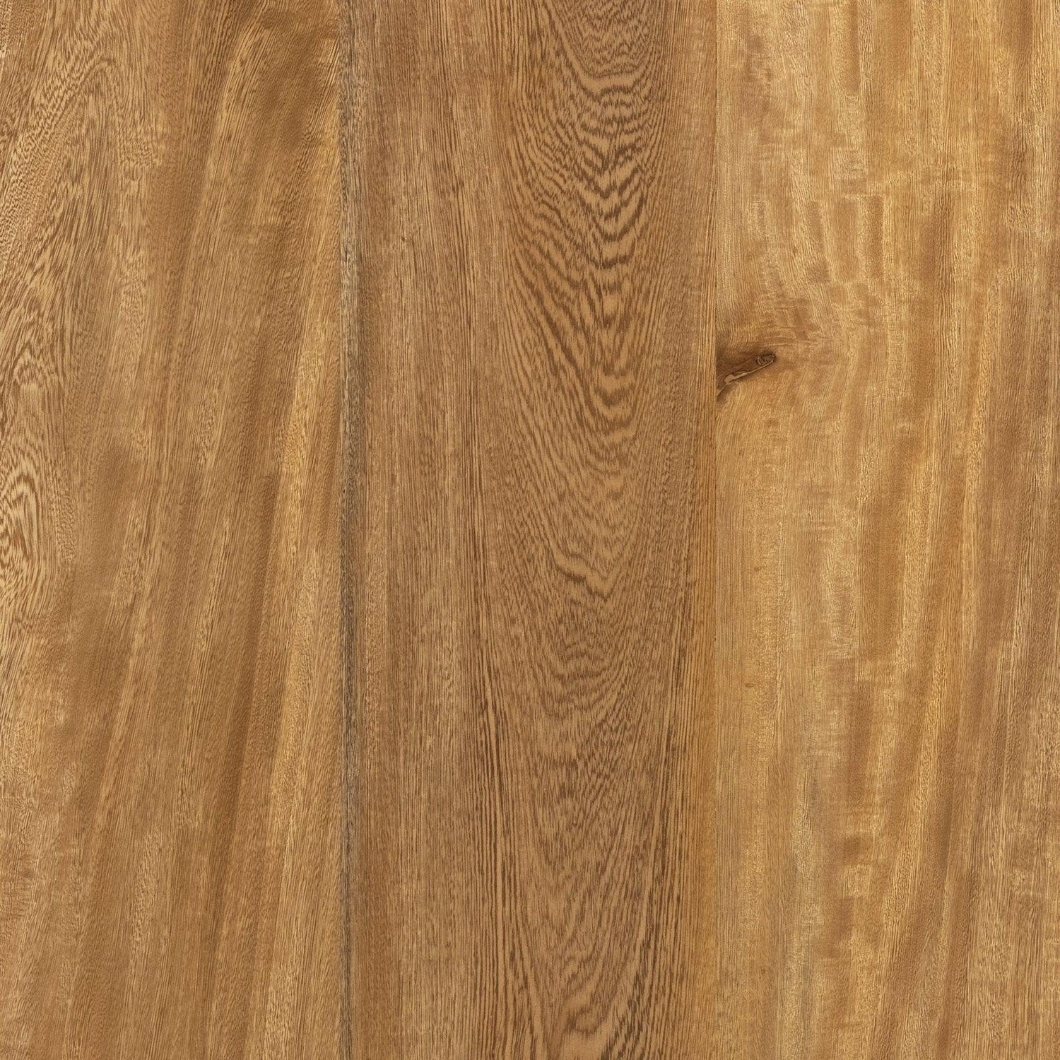 - De corte grueso y color gris humo, un cuero de grano superior suave se teje para crear una capa inferior flotante debajo de una mesa limpia y angular de madera natural Rosa Morada.