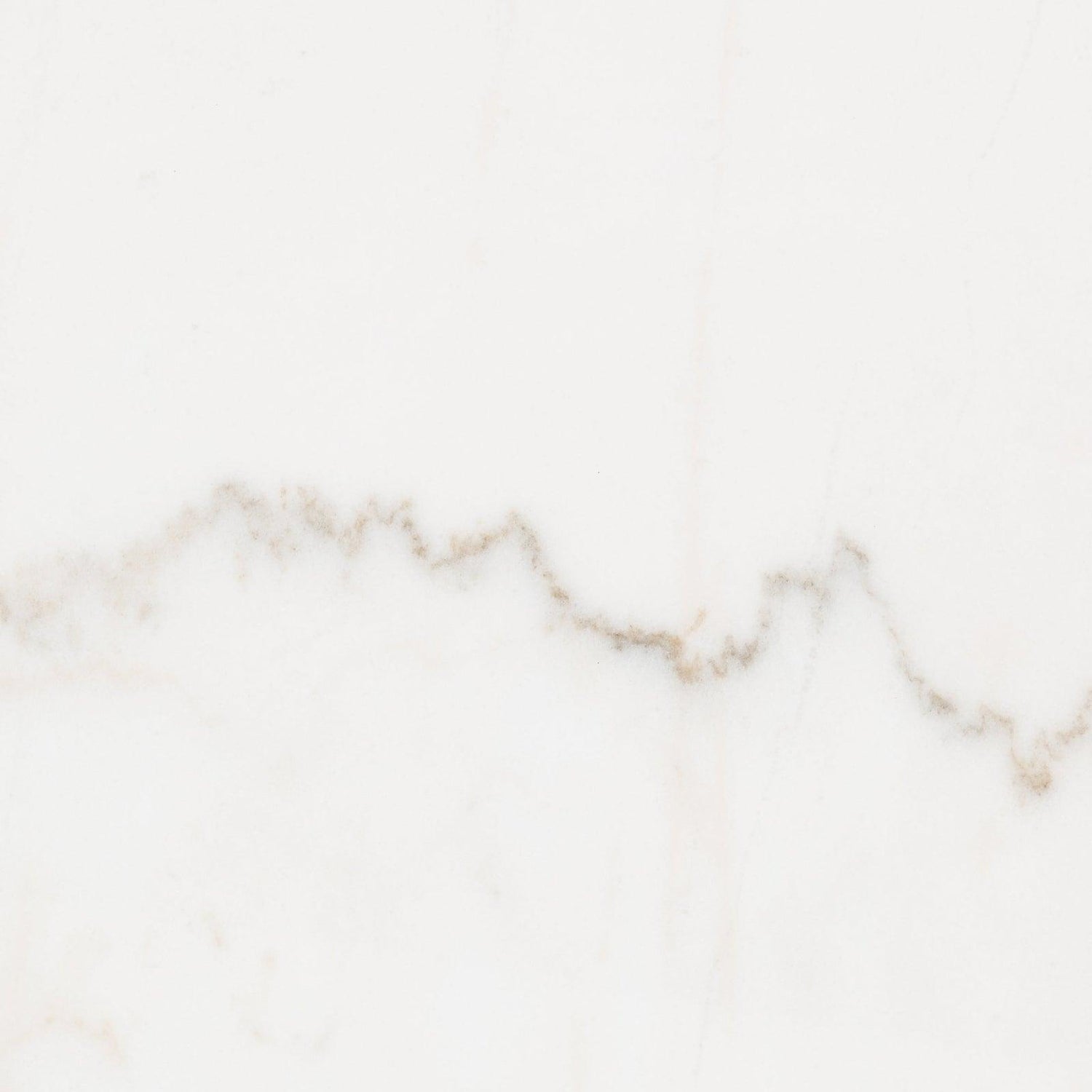 • Una mesa de centro estilo tambor de roble con acabado color miel presenta una tapa insertada de hermoso mármol blanco.