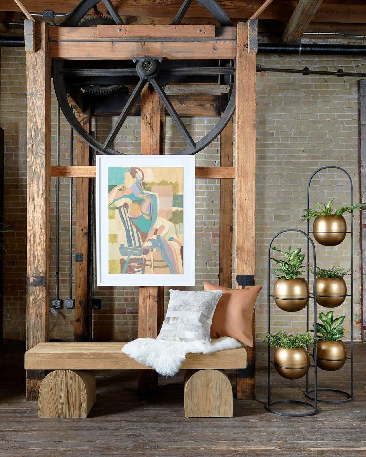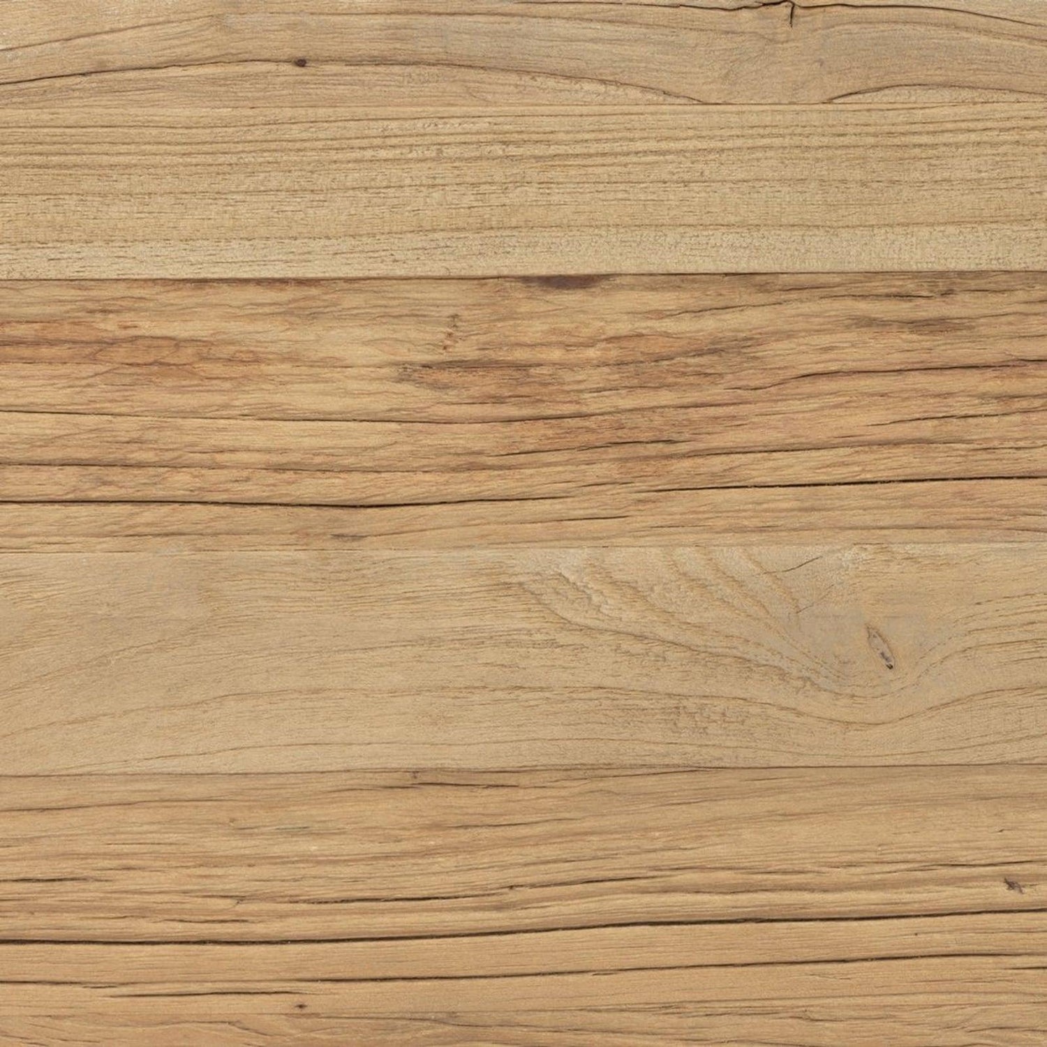 - Realizado a mano con olmo recuperado macizo con nudos y vetas visibles, sus gruesas patas arqueadas sostienen un asiento limpio tipo banco.