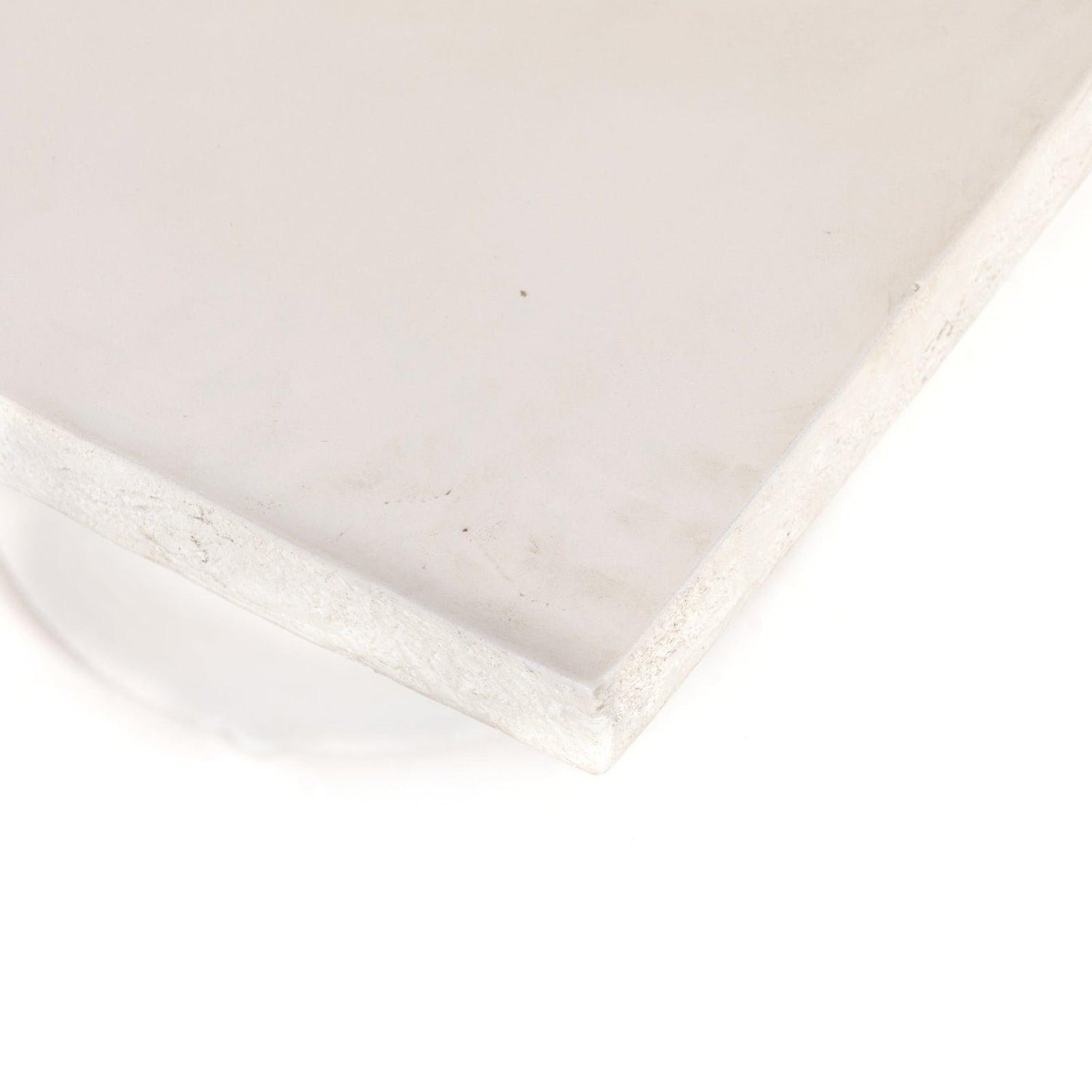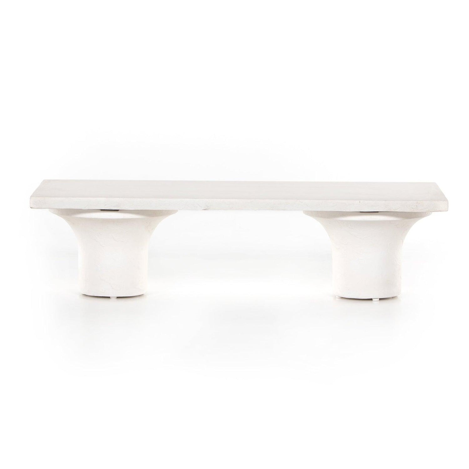 - Fabricadas con hormigón moldeado en yeso, las patas estilo pedestal sostienen una mesa rectangular de hormigón liso con acabado blanco, para una apariencia limpia inspirada en el adobe.