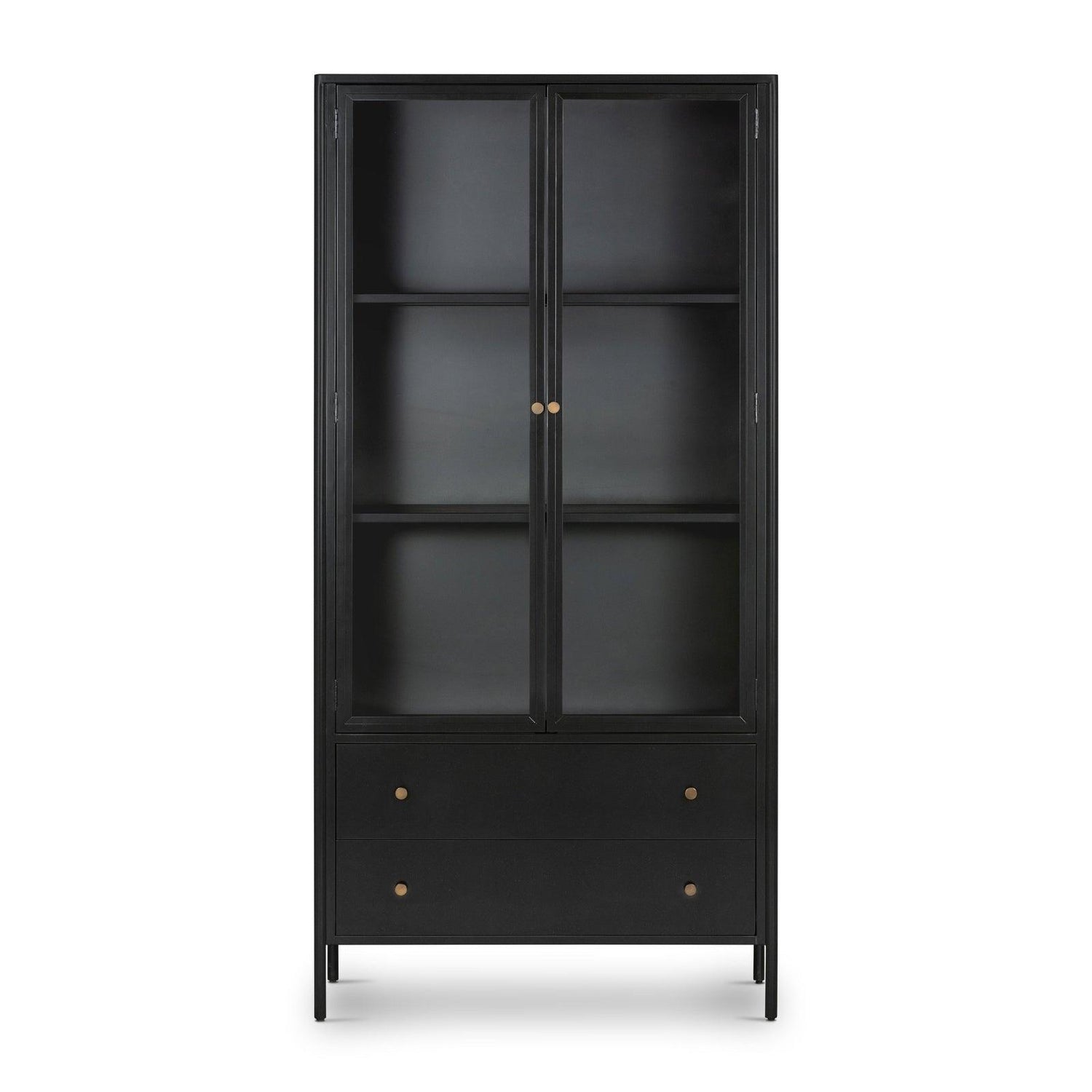 - Las puertas frontales de vidrio permiten infinitas opciones de almacenamiento y estilo para exhibir libros y tesoros favoritos.