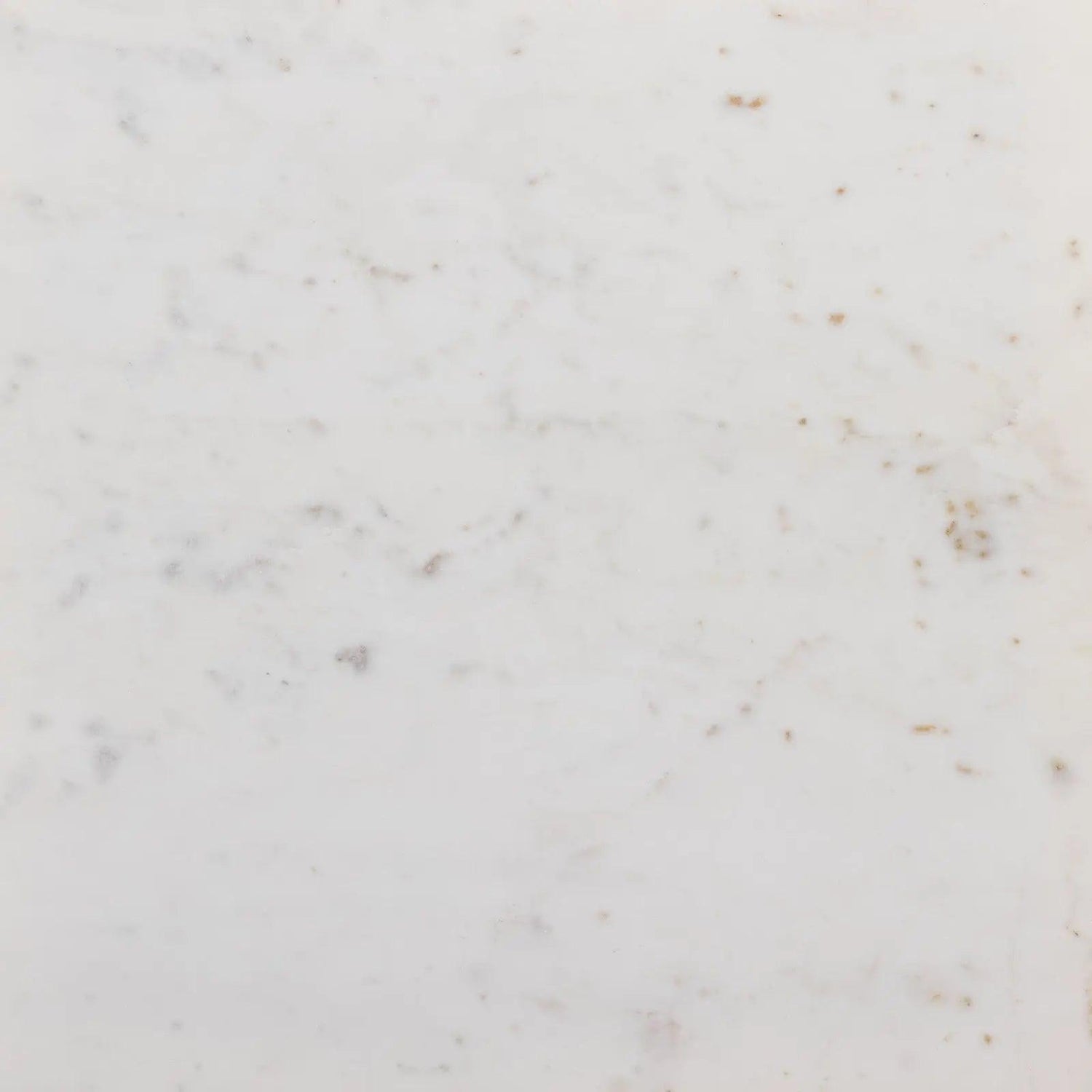 - Terminadas en un negro crudo, las patas de aluminio fundido de ángulos únicos sostienen una mesa cuadrada de mármol sólido en un blanco limpio y pulido.