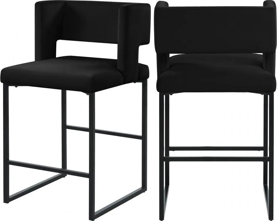 Juego de 2 taburetes de bar Caleb de terciopelo negro - 970Black-C | Meridian está agotado y se enviará tan pronto como vuelva a estar disponible.