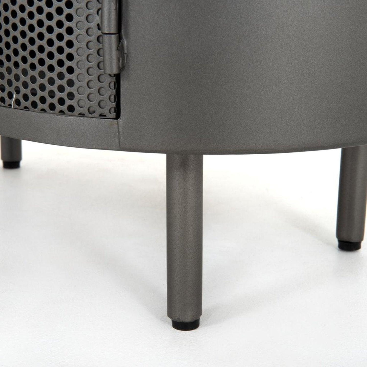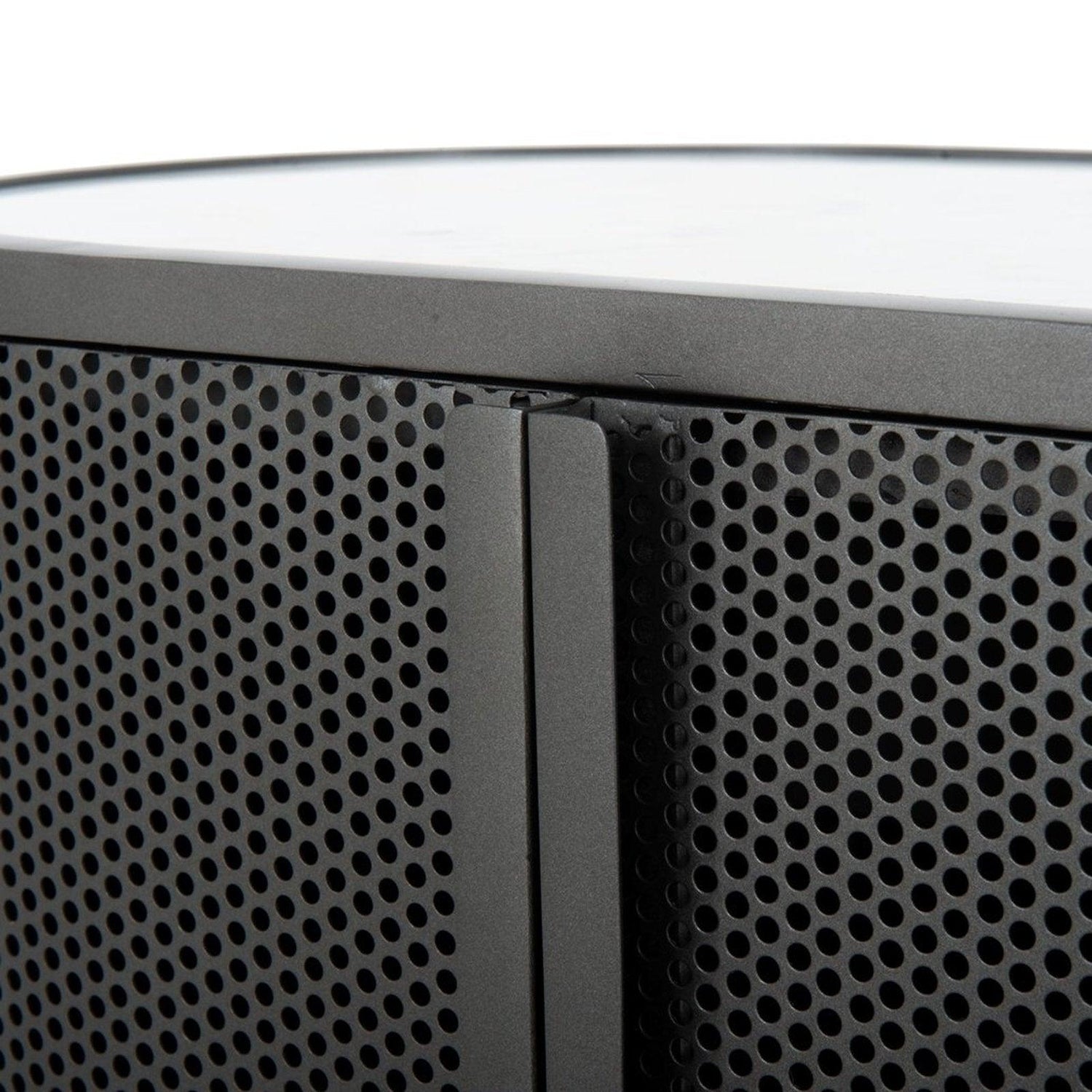 • El hierro con acabado metalizado es redondeado y perforado, para darle un toque intrigante al popular diseño de pastillas.