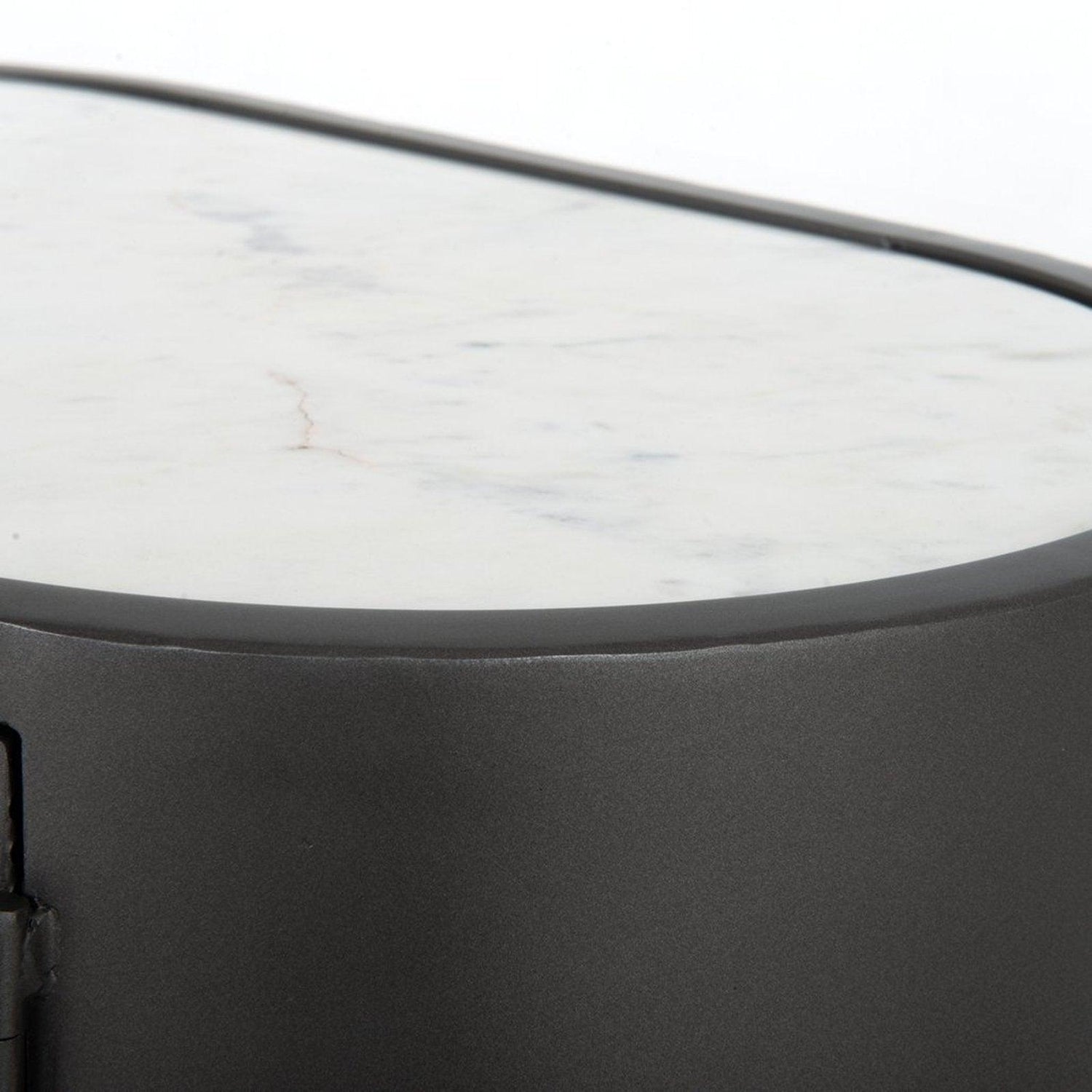 • Una cubierta de mármol blanco pulido añade interés material a esta pieza única de estilo industrial.