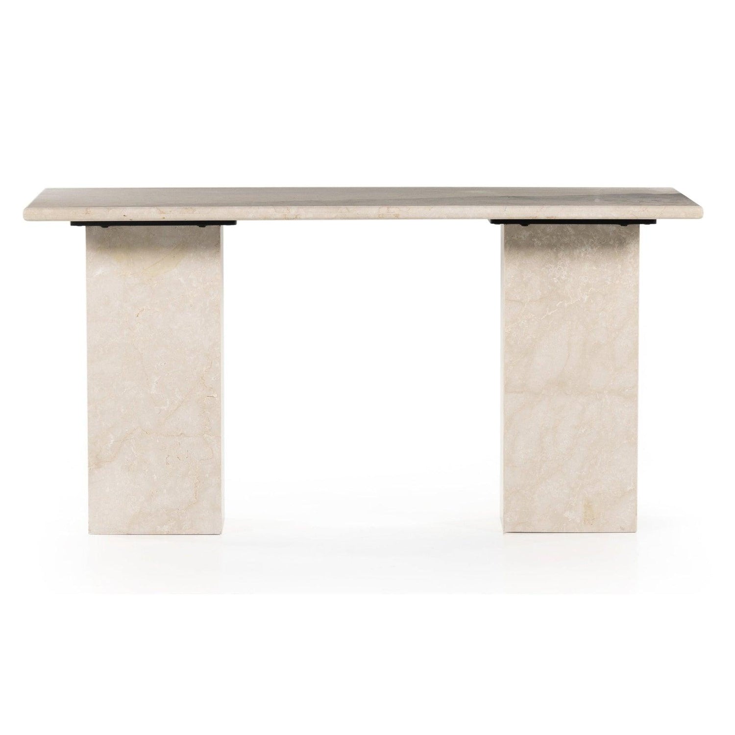 • Hecho completamente de mármol sólido en un blanco cremoso versátil, un escritorio majestuoso y escultural es una declaración de estilo importante.