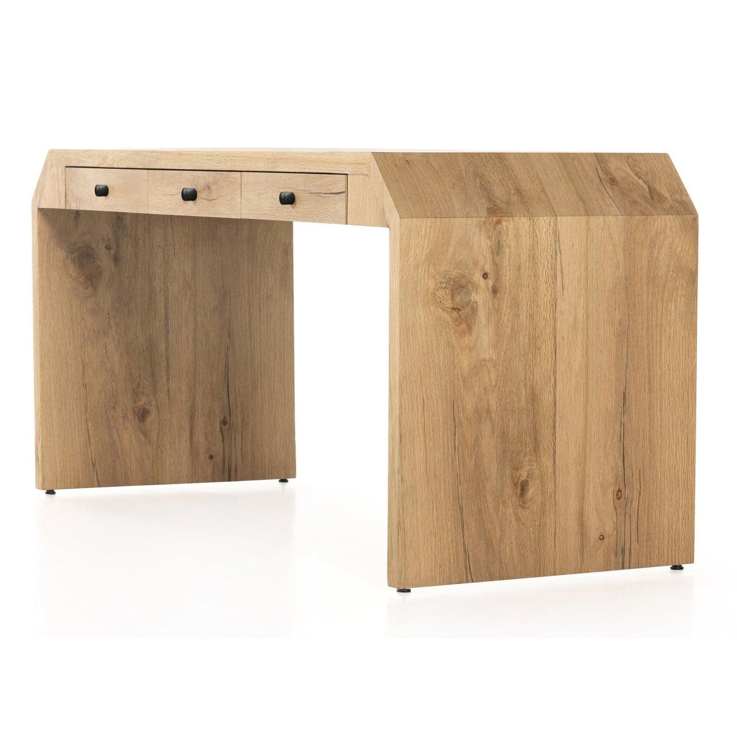 - Hecho completamente de roble macizo con abundante veta natural, su curvatura única le da a este escritorio de espíritu orgánico una sensación aireada con un carácter natural.