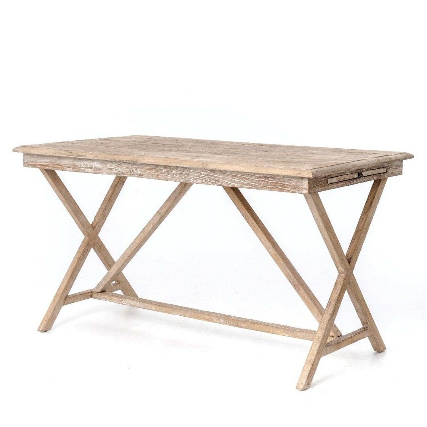 - Los soportes entrecruzados y en ángulo añaden interés arquitectónico a un escritorio sencillo de inspiración francesa.