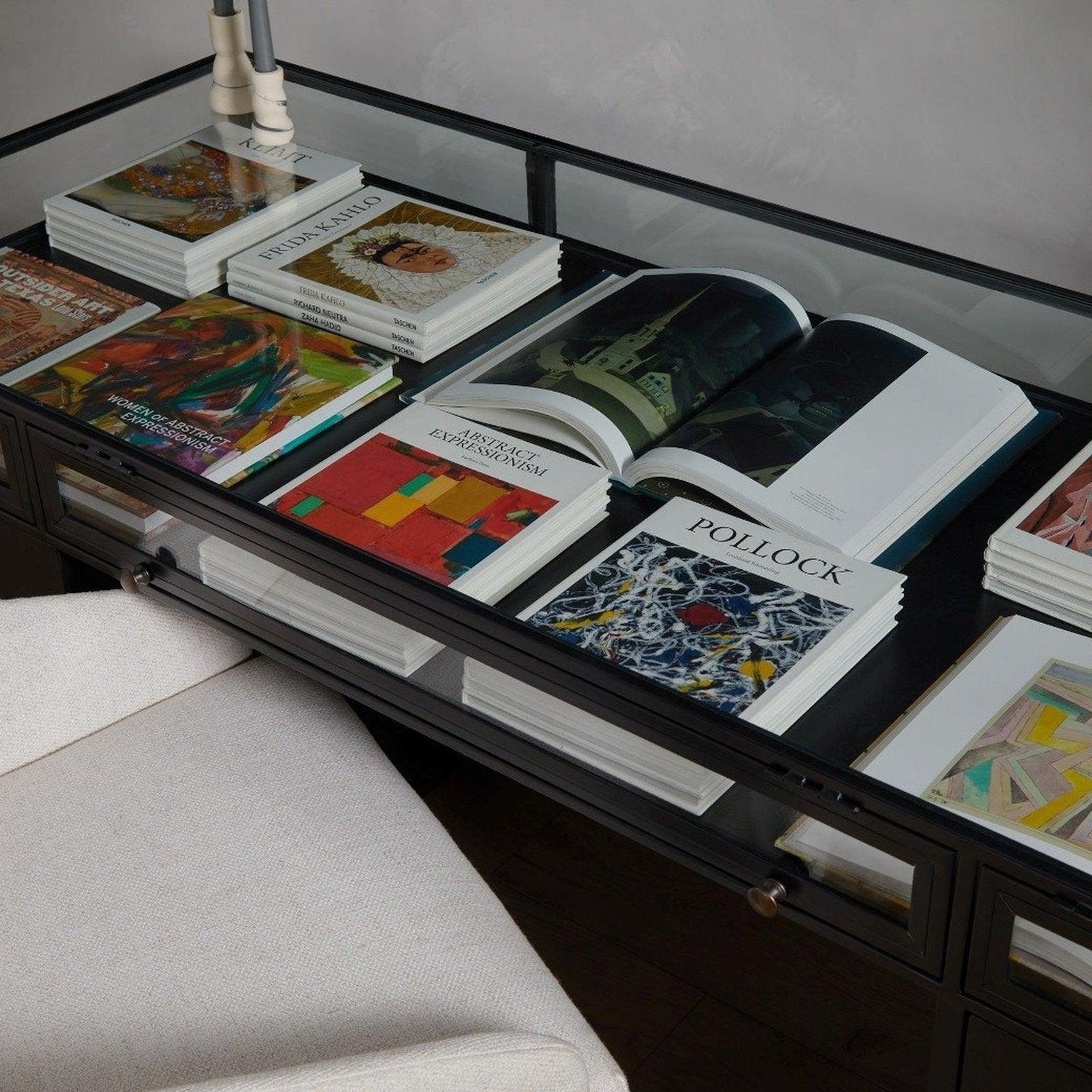 - Exhiba sus posesiones más preciadas en un gabinete de vidrio con acabado de metal negro mate o bronce.