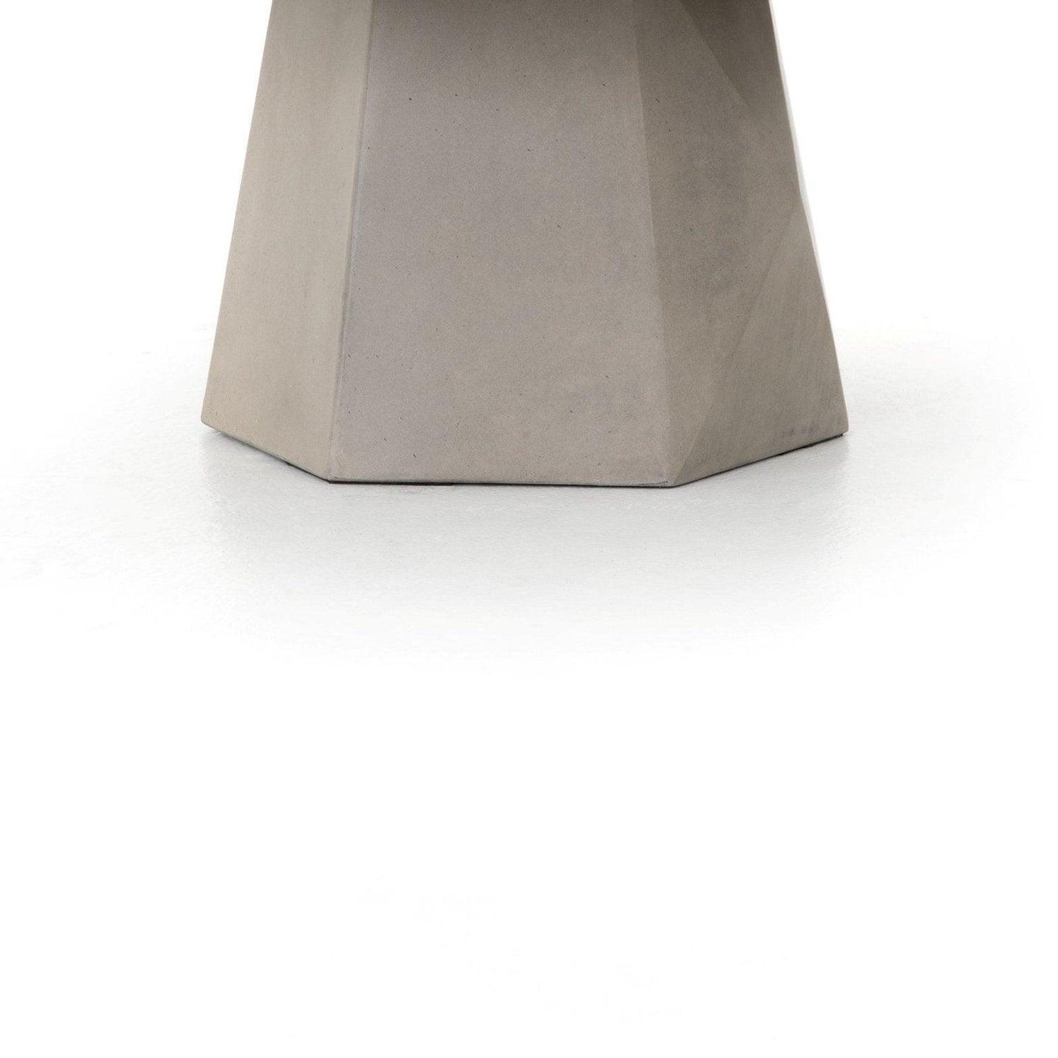 - El hormigón gris forma una base facetada que impacta desde todos los ángulos.