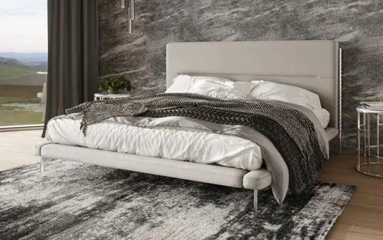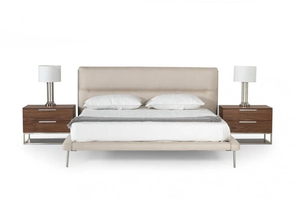Modrest Bergeron - Cama contemporánea de tela tejida color crema - VGODZW-20107-WHT-BED | VIG