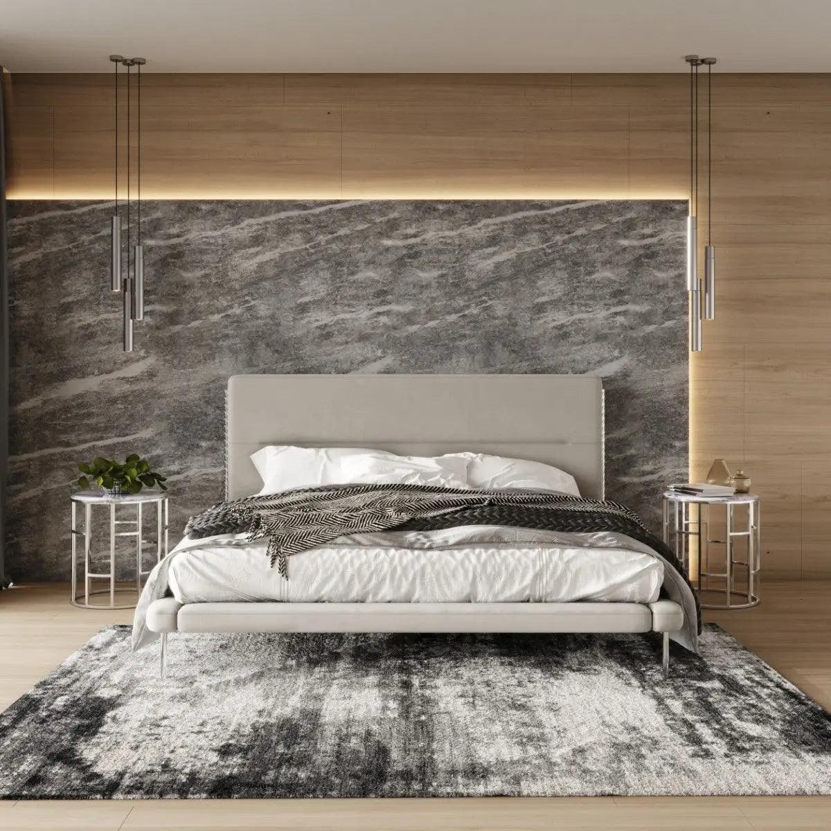 La cama Bergeron es una elegante estructura contemporánea. El tejido realza la silueta sobria de esta elegante pieza. Un singular capitoné central completa la cama, pero no llega a ser un diseño moderno y sofisticado.