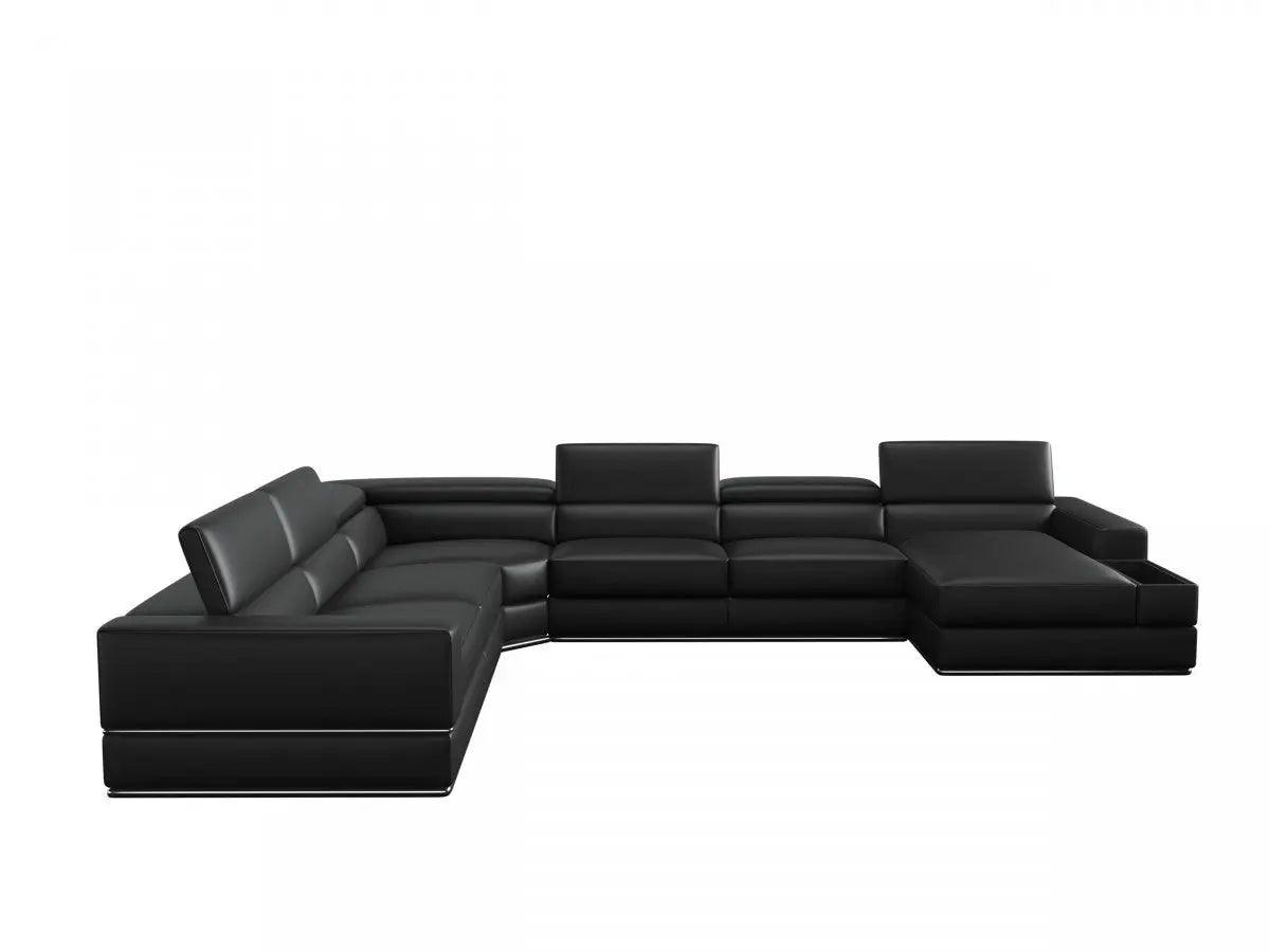Divani Casa Pella - Sofá seccional moderno en forma de U de cuero italiano negro - VGCA5106O-BLK-SECT | VIG