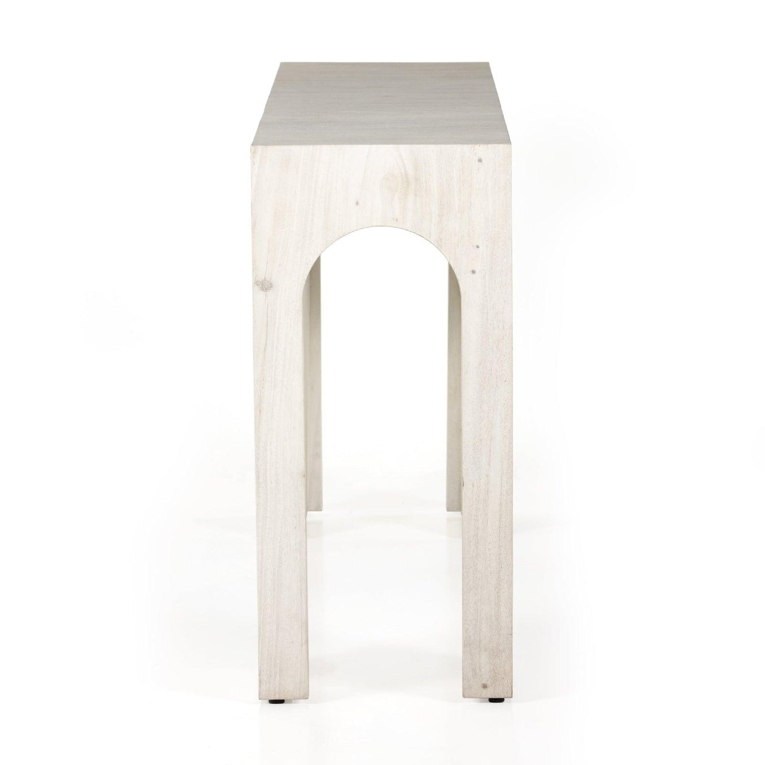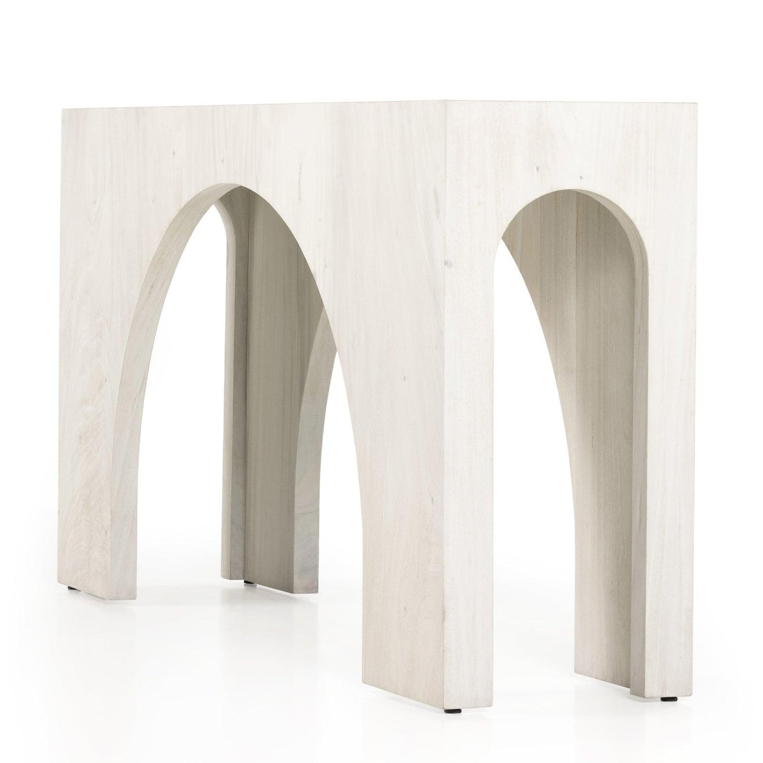 - Fabricada en hermoso Guanacaste blanqueado, los arcos bien formados y las esquinas en forma de bloque hablan de la inspiración arquitectónica detrás de esta llamativa mesa consola.