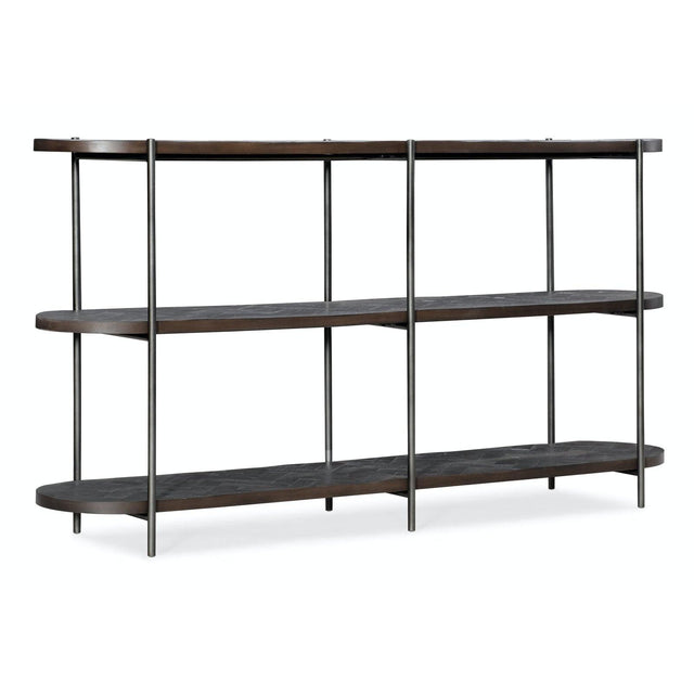 Consola industrial rústica ovalada con estantes – Muebles Hooker está agotado y se enviará tan pronto como vuelva a estar disponible.