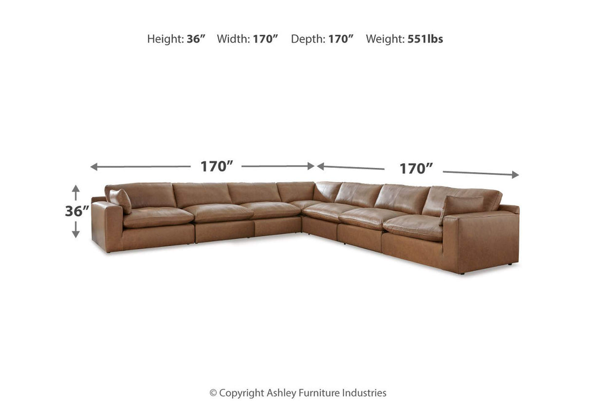 Seccional de 7 piezas Emilia 30901S6 Caramel - Cuero | Ashley está agotado y se enviará tan pronto como vuelva a estar disponible.