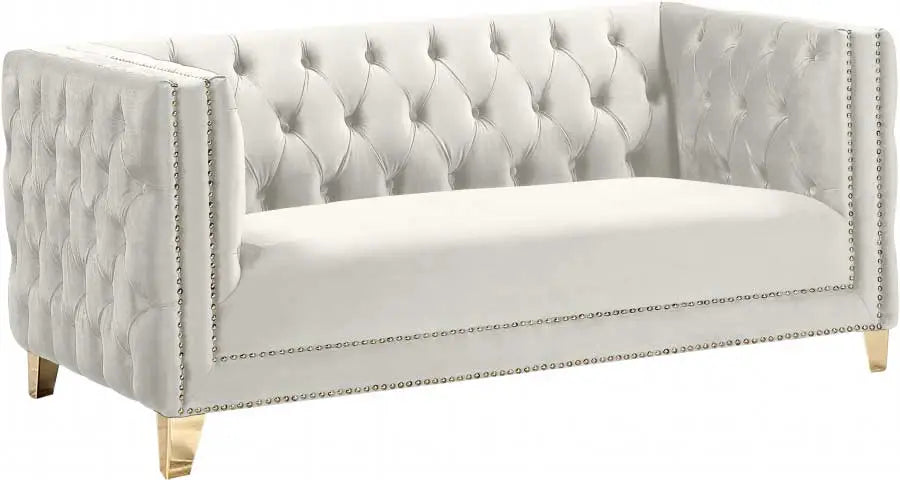 Meridian Furniture - Sofá de dos plazas Michelle de terciopelo color crema - 652Cream-L