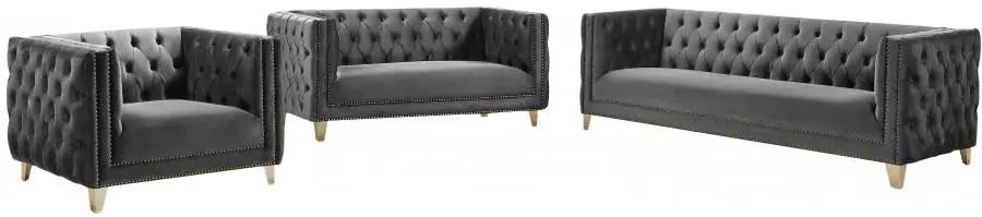 Sofá de dos plazas Michelle de terciopelo gris - 652Grey-L | Meridian