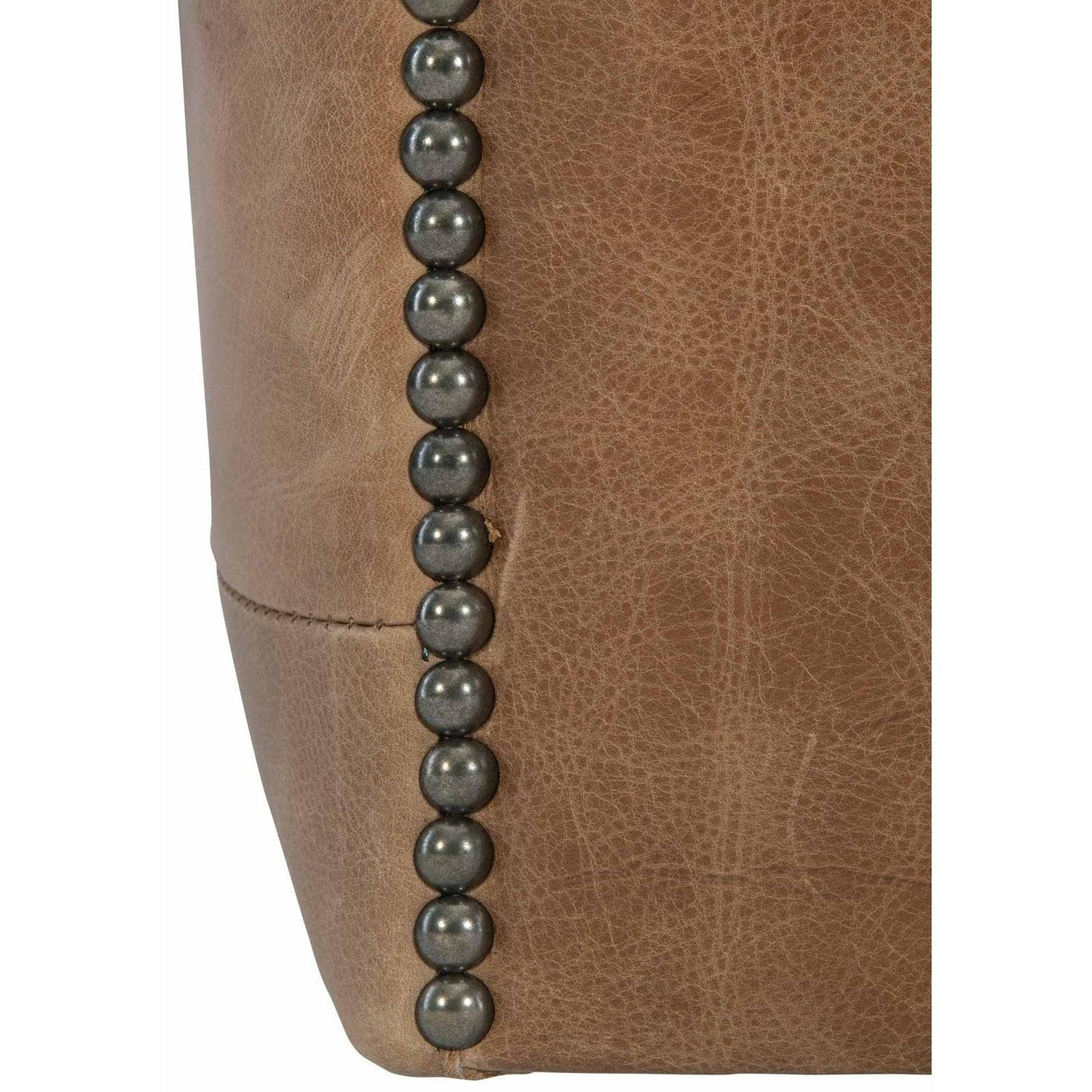 - La tapicería de cuero fino, los botones capitoné y los detalles de tachuelas crean una apariencia sofisticada.