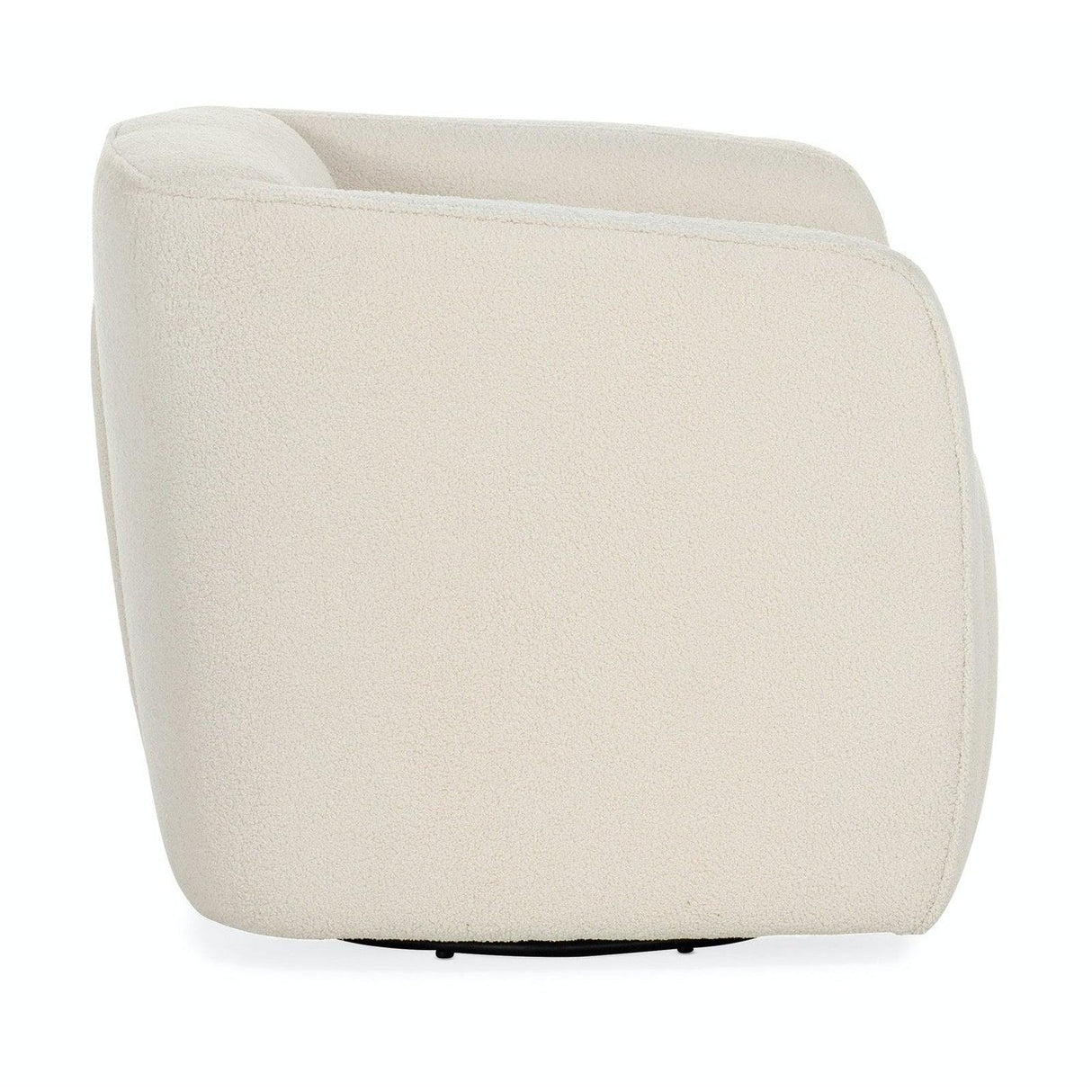 Refúgiese en la comodidad moderna con el sillón giratorio Bennet de Hooker Furniture . Diseñada con una silueta redondeada tipo bañera y un asiento y respaldo firmes, esta discreta silla giratoria está revestida en una tela ultrasuave de lino lanudo en un relajante tono crema. Su base giratoria de 360 grados le aporta versatilidad a su diseño compacto y elegante, convirtiéndola en la opción perfecta para salas de estar, rincones de lectura o rincones modernos.